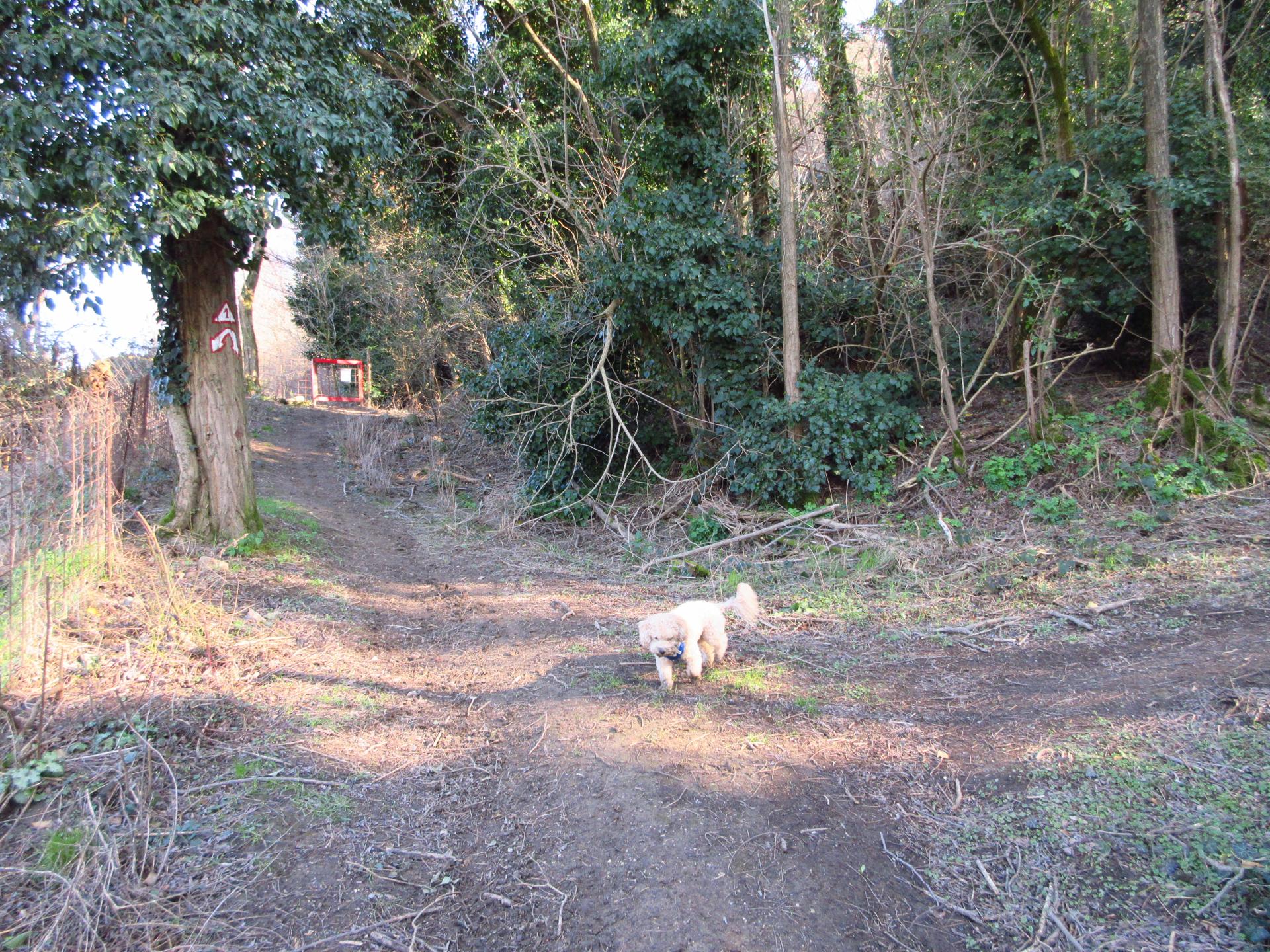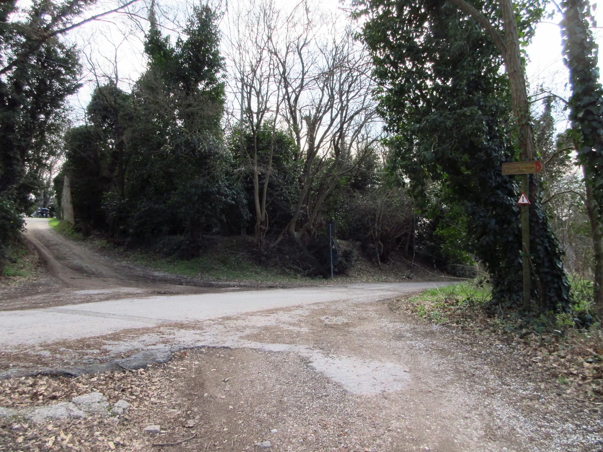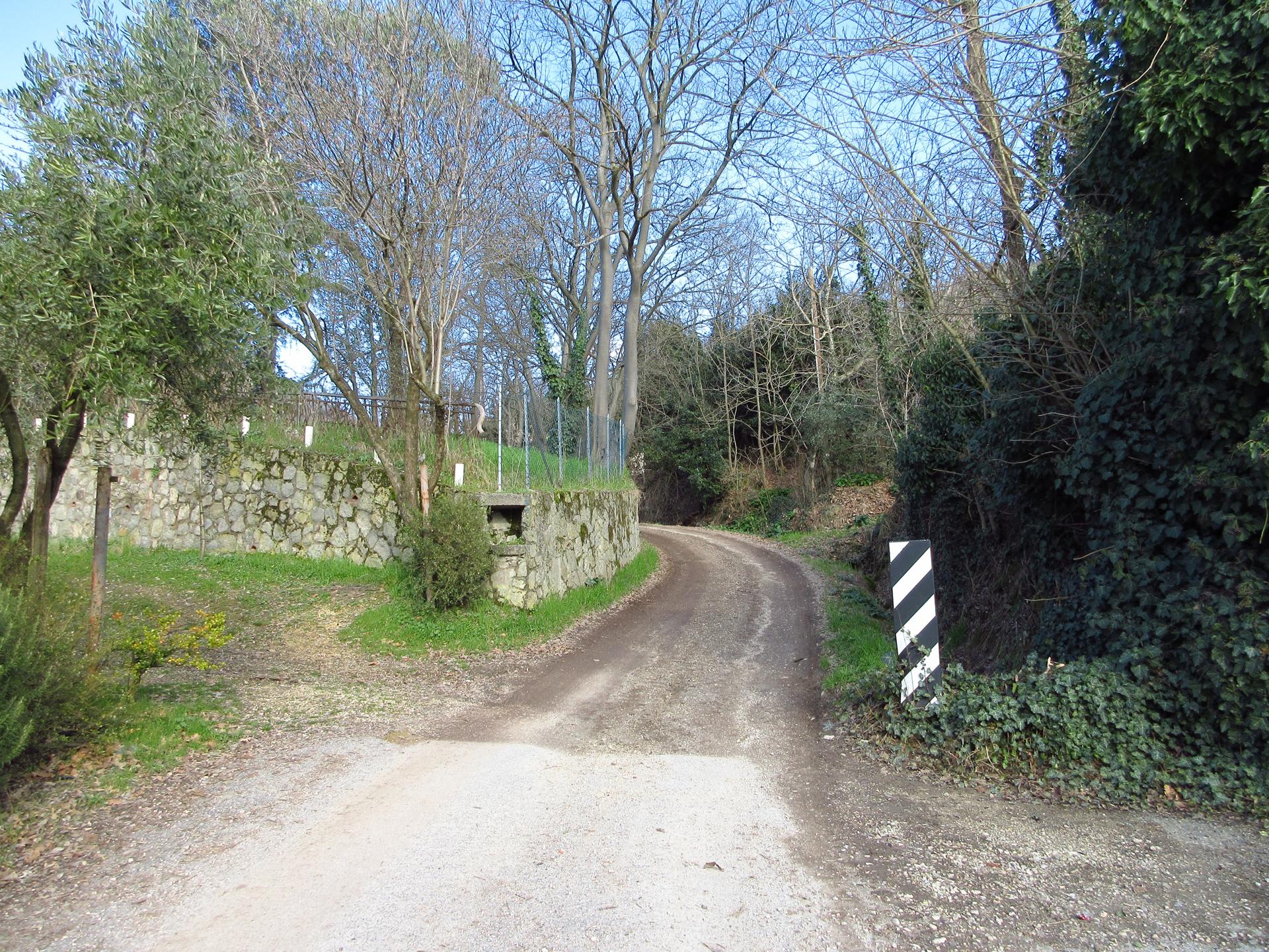 Dopo circa 100 metri dal primo tornante che si incontra, il sentiero svolta a sinistra rimanendo in prossimità del muro di recinzione della villa.