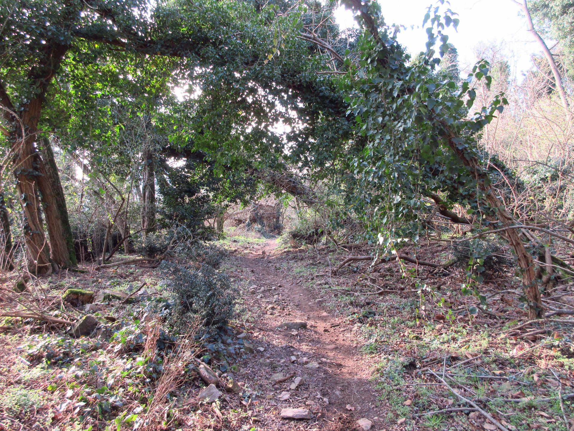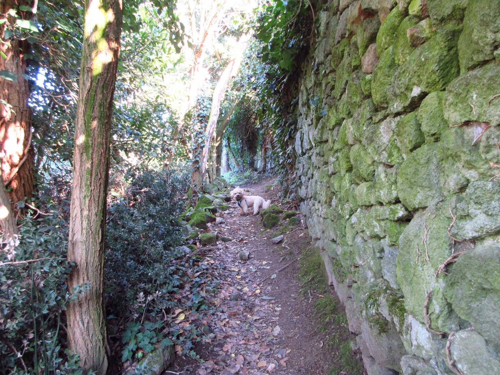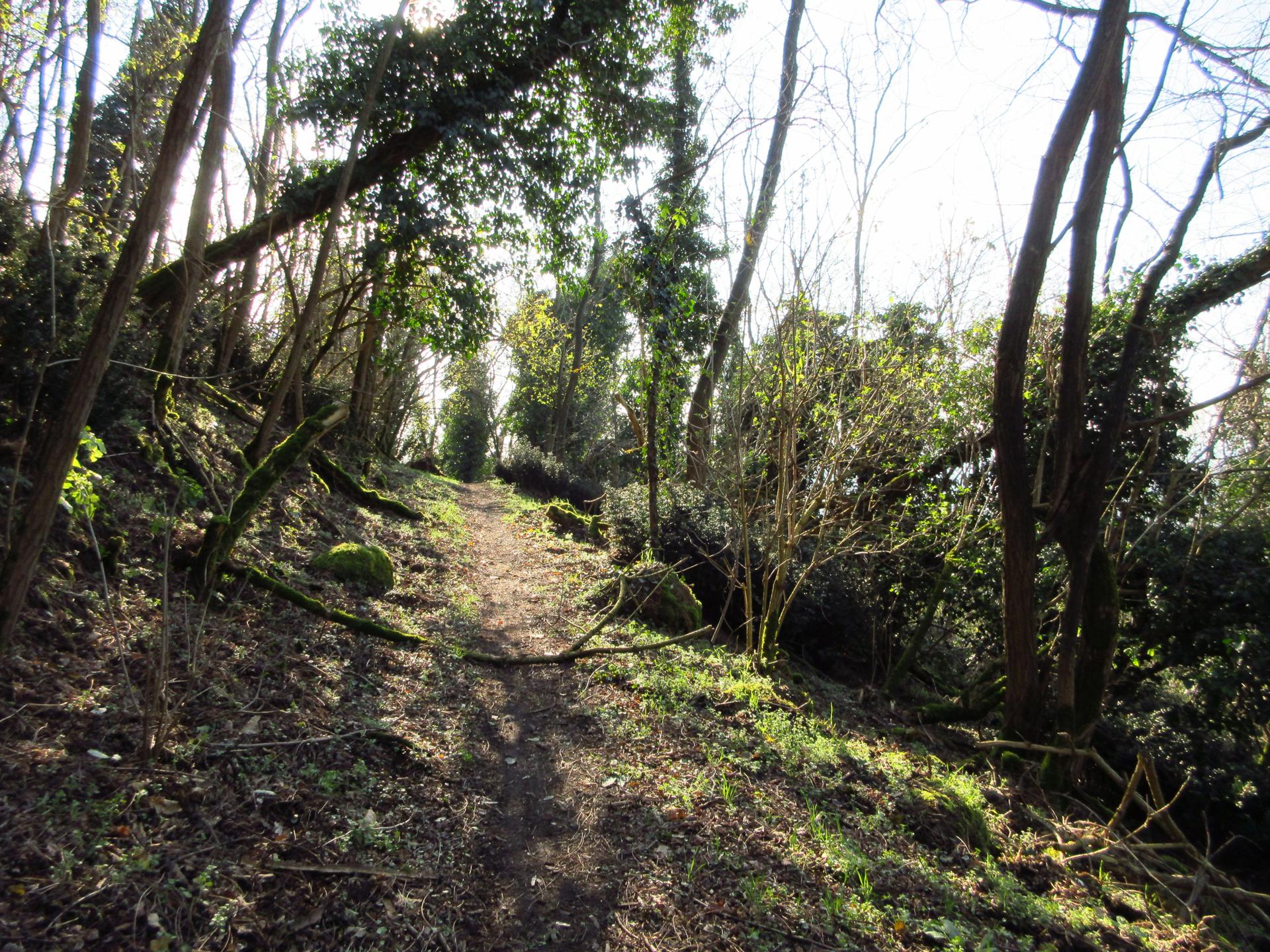 Dopo circa 100 metri dal primo tornante che si incontra, il sentiero svolta a sinistra rimanendo in prossimità del muro di recinzione della villa.