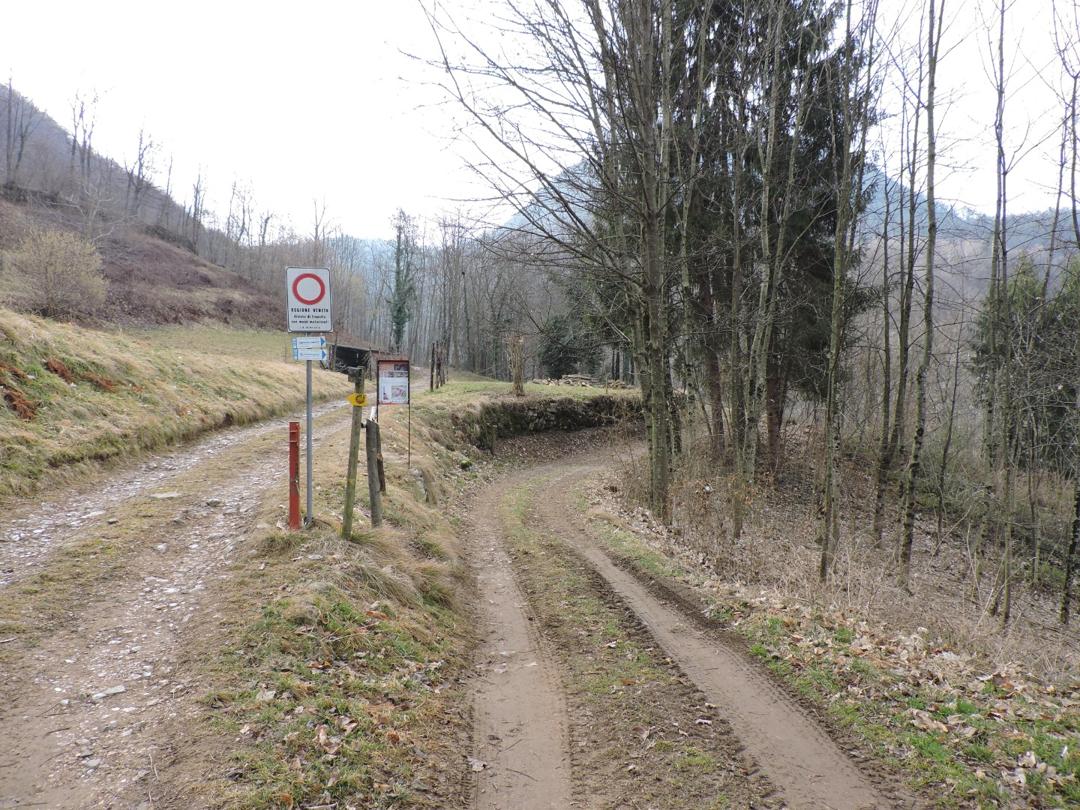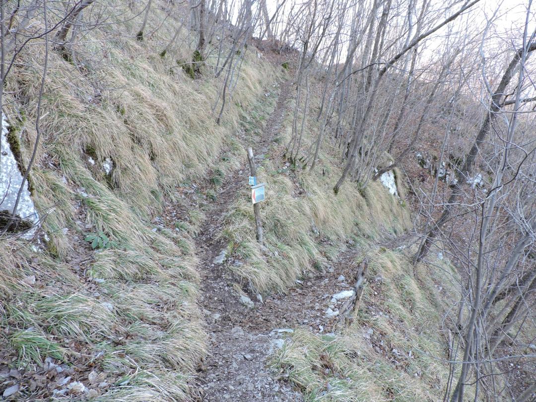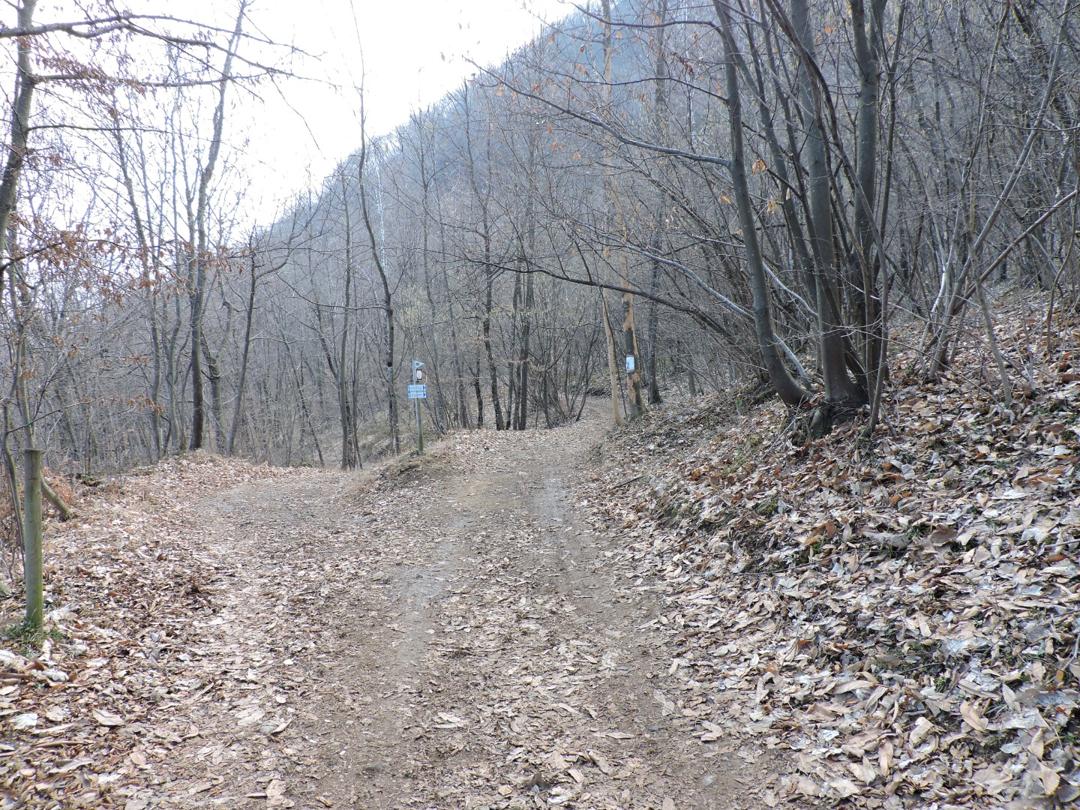 Indicazione del sentiero, a sinistra si sale sul monte Cengio
