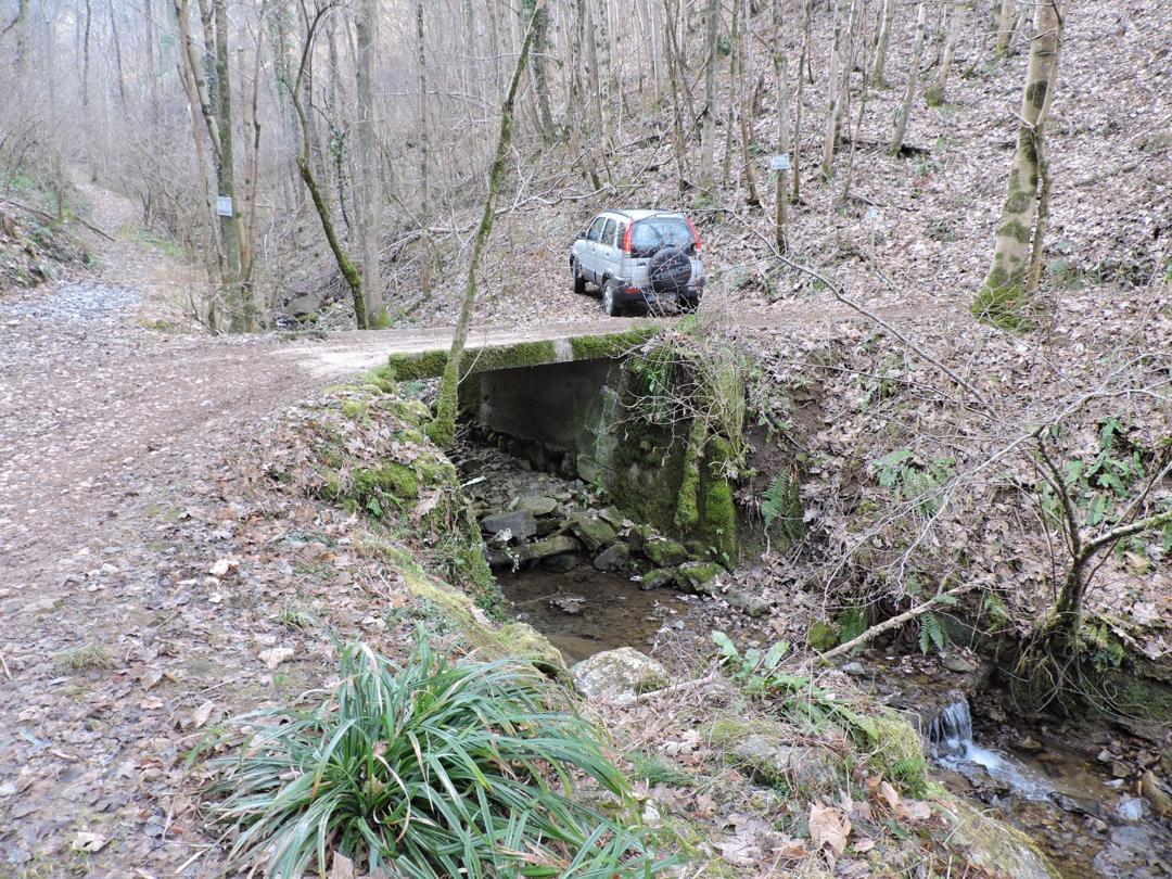 Superato un piccolo ponte la strada inizia a salire. Poco dopo il ponte, ad un primo incrocio, mancano le tabelle che indicano il percorso. Prendere a sinistra e continuare la salita.
