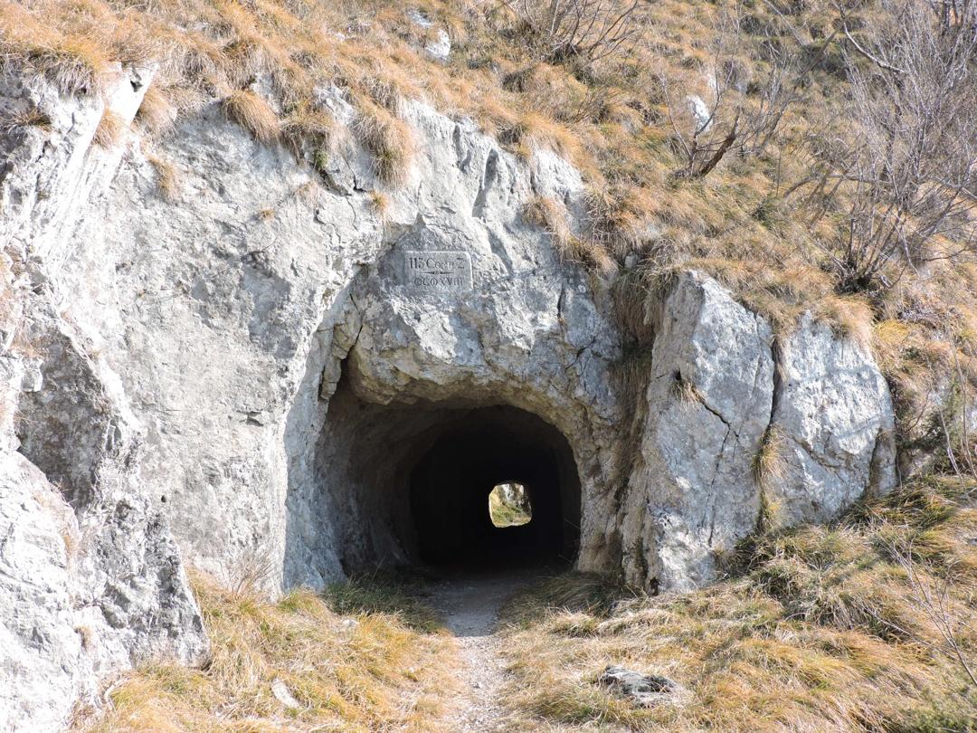 Finita la visita e lo spuntino torniamo indietro ripassando la galleria e prendendo il sentiero che sale a destra poco dopo la tabella storica (segnato sempre come sentiero nr.12).