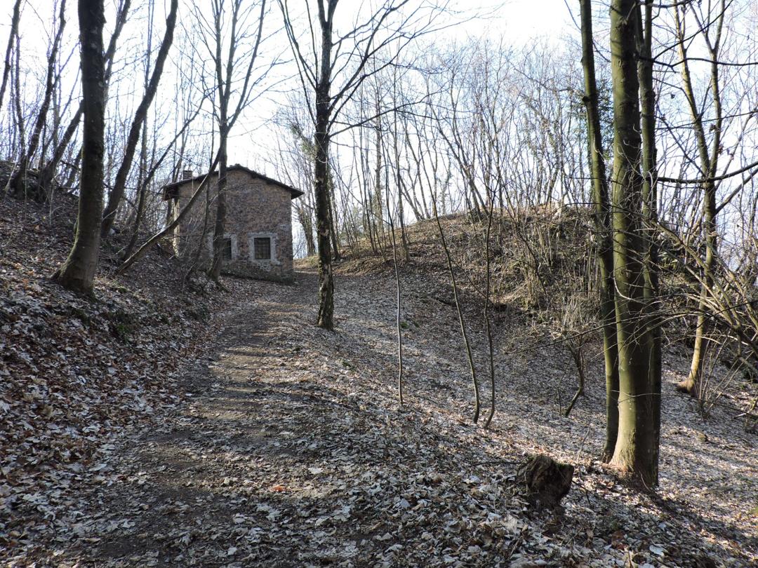 Un promontorio erboso con un roccolo ci permette di distinguere chiaramente di fronte a noi il monte Singio.