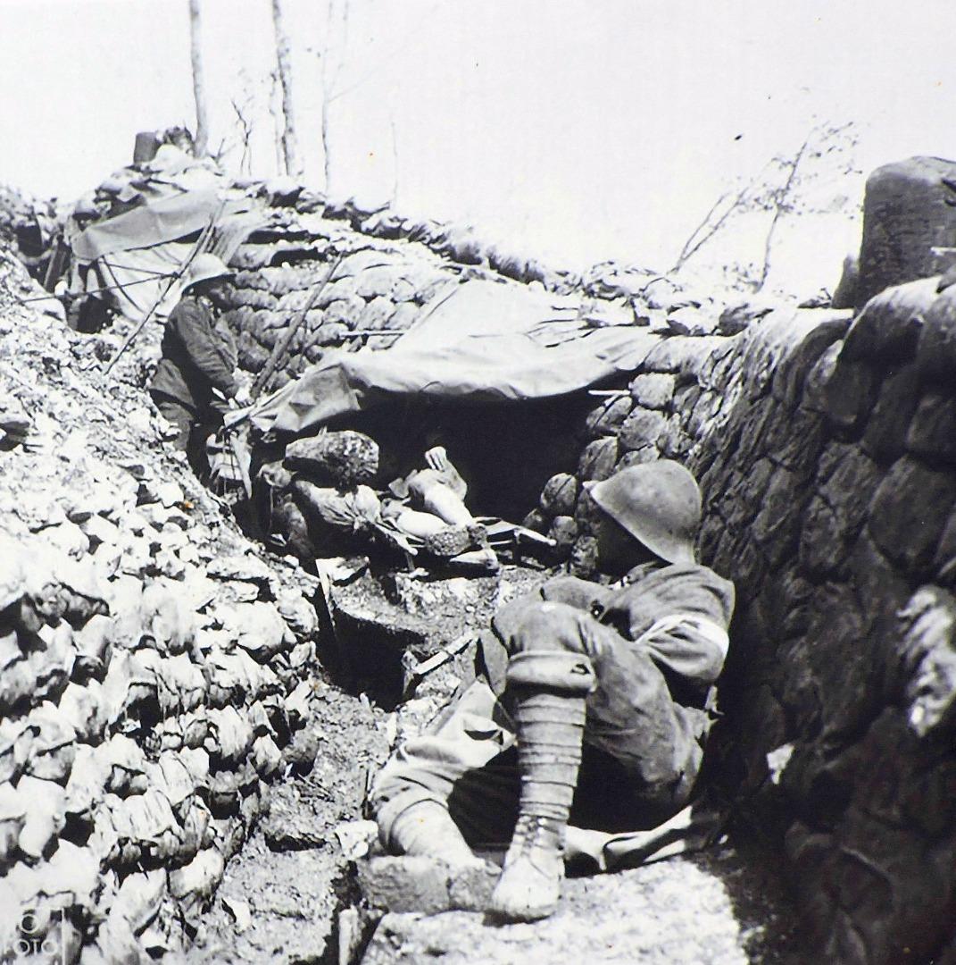Alla fine del 1916 le opere difensive nella valle di Manfron si limitavano ad una trincea continua alla base del monte Cengio fino a incontrare la valle del Leogra sopra il ponte delle Capre.