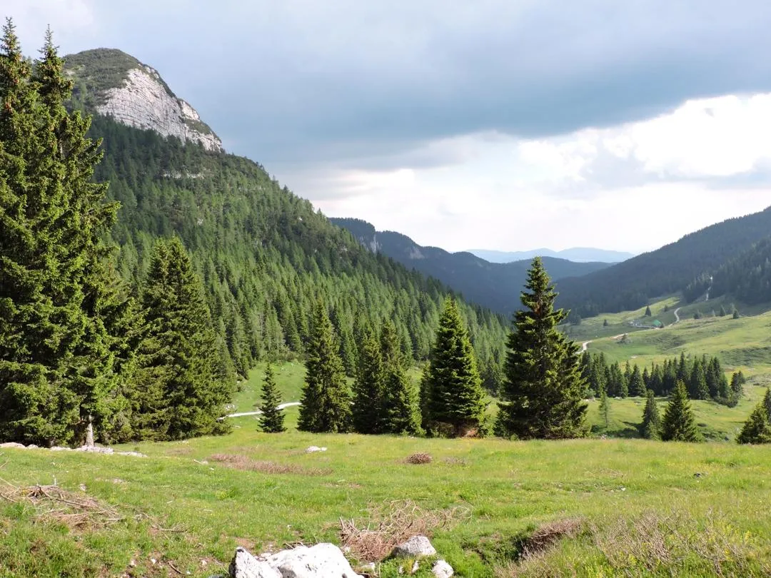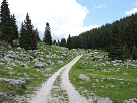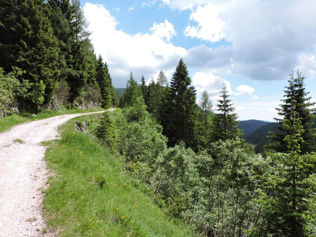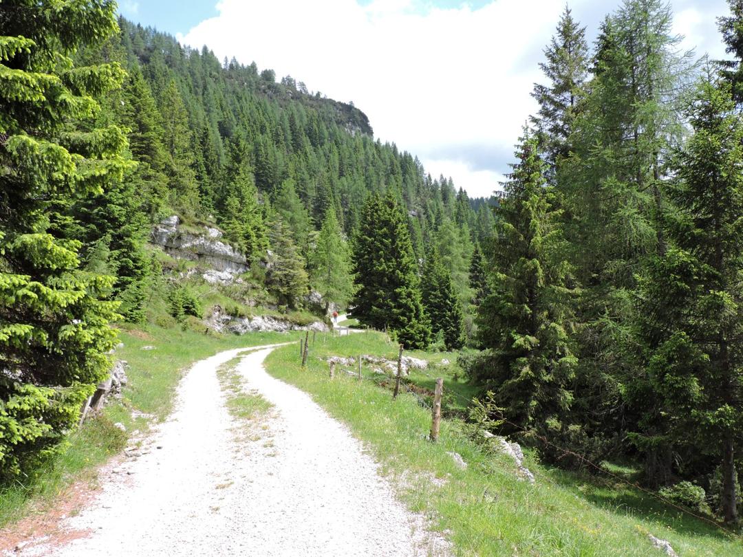 L'escursione inizia salendo per la strada che è sulla destra quando si arriva in macchina in direzione malga Zingarella.