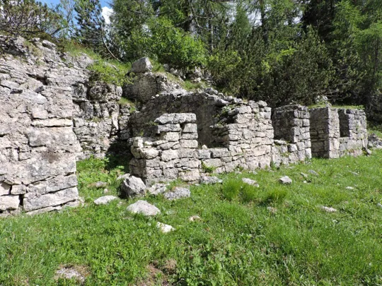 Quando il sentiero torna ad essere quasi in piano, sulla destra si notano altri ruderi della Grande Guerra.