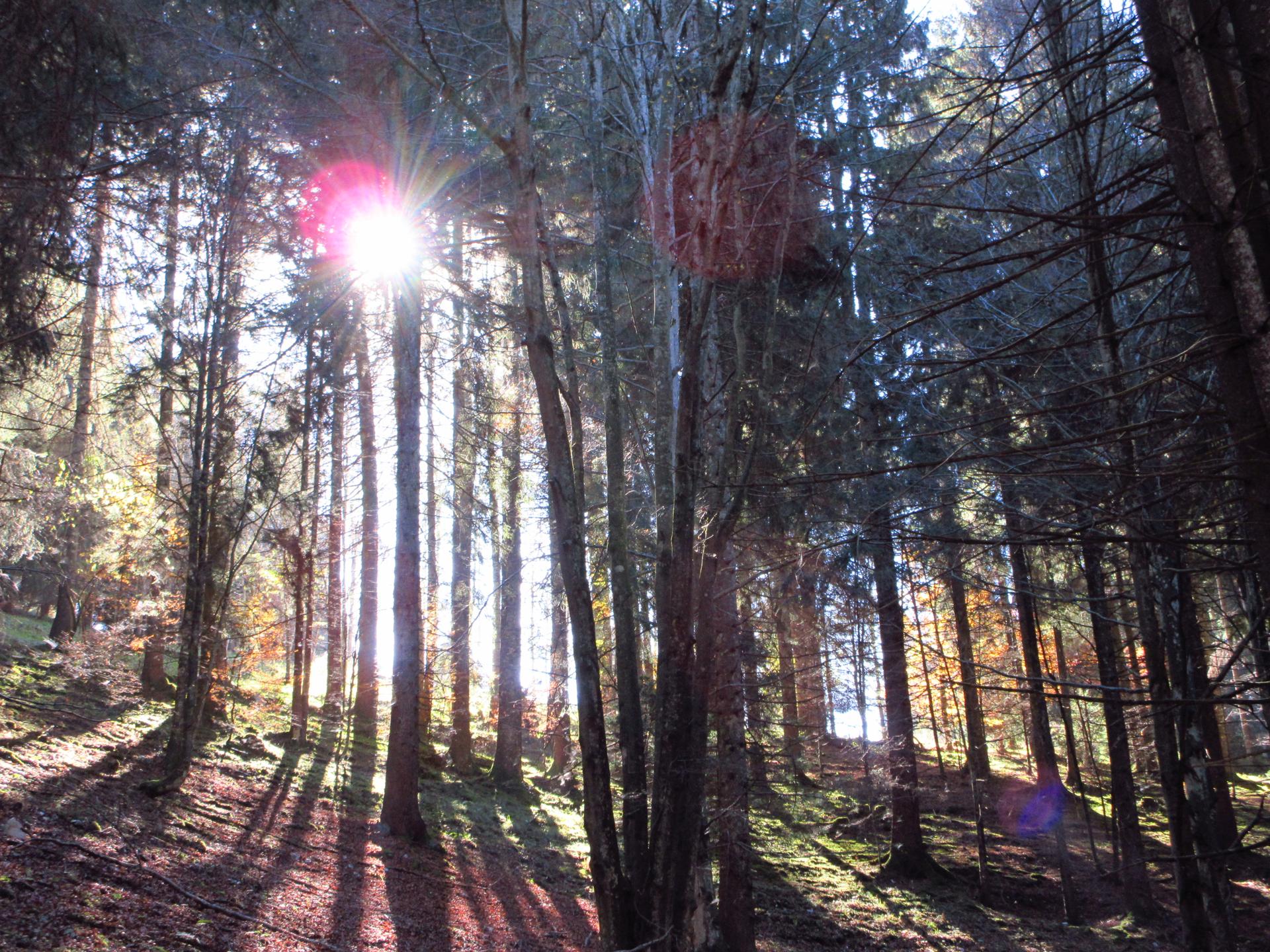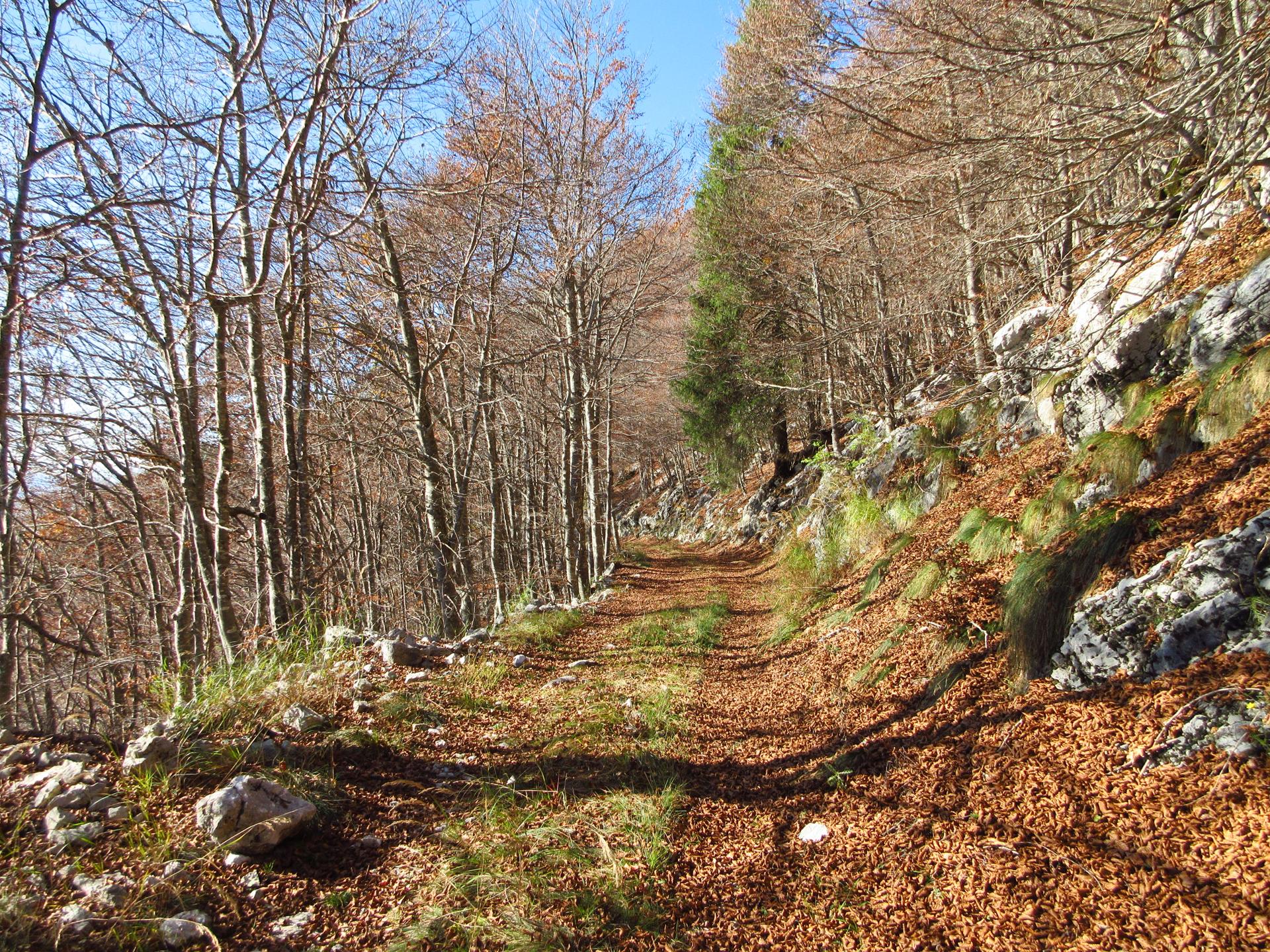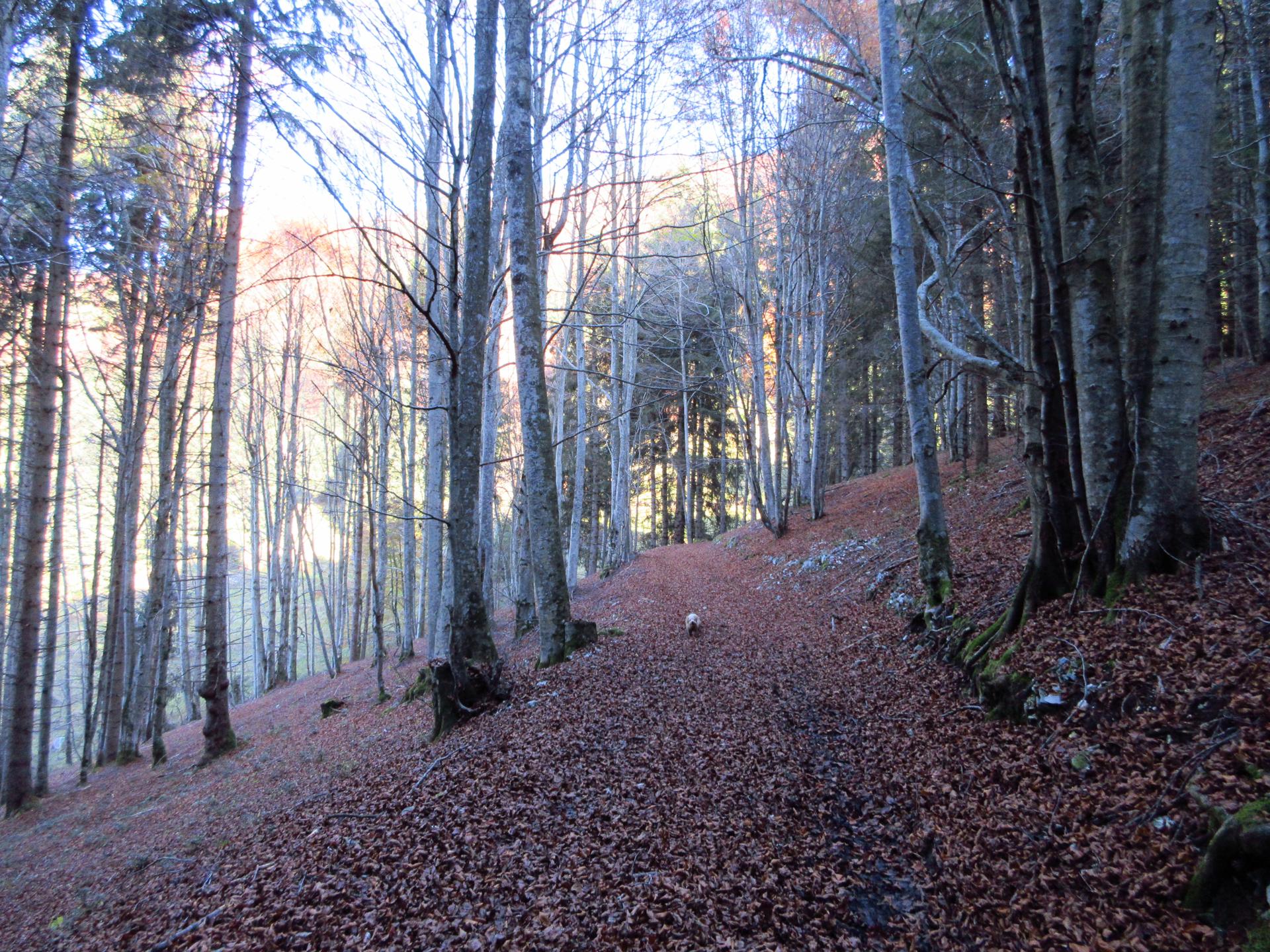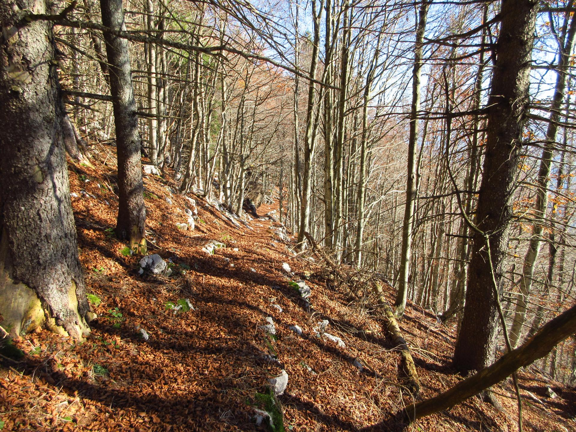 Entrati nel bosco ampie curve ci portano sulla cima del monte Zomo.