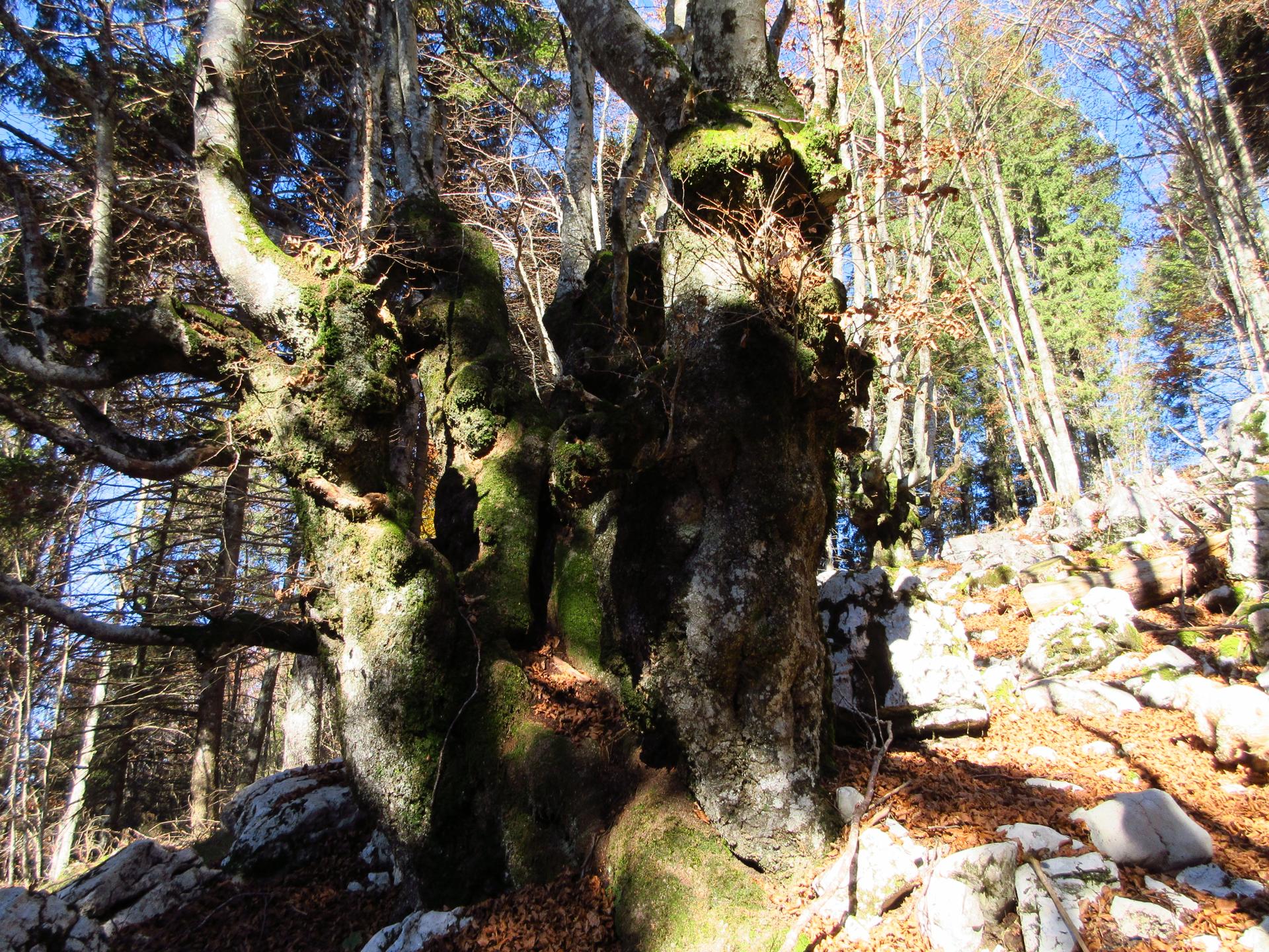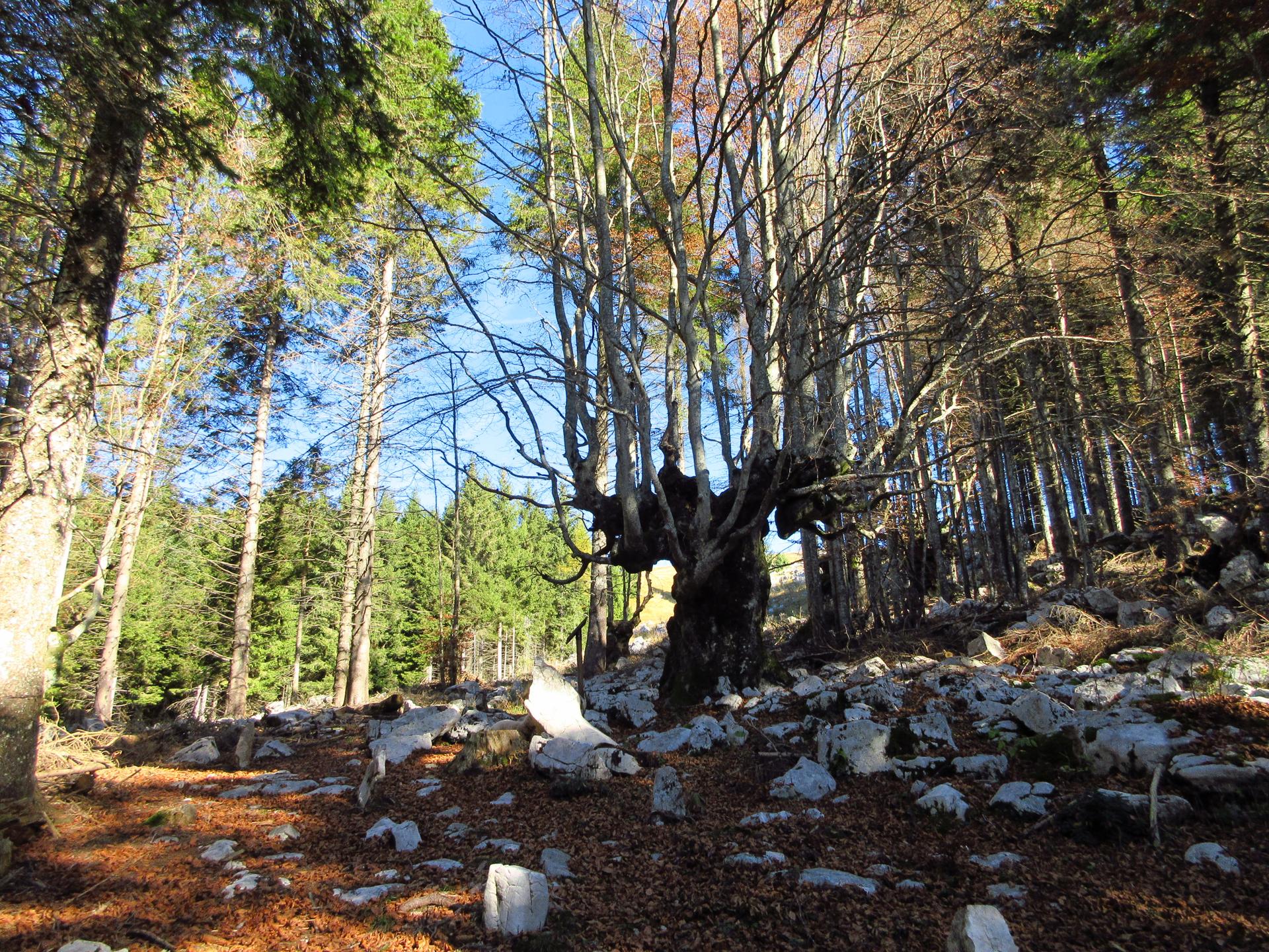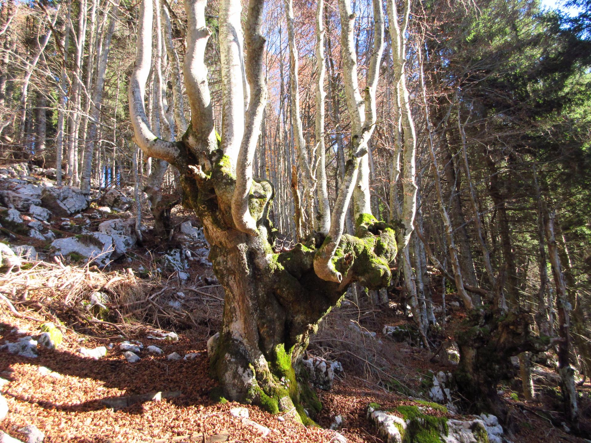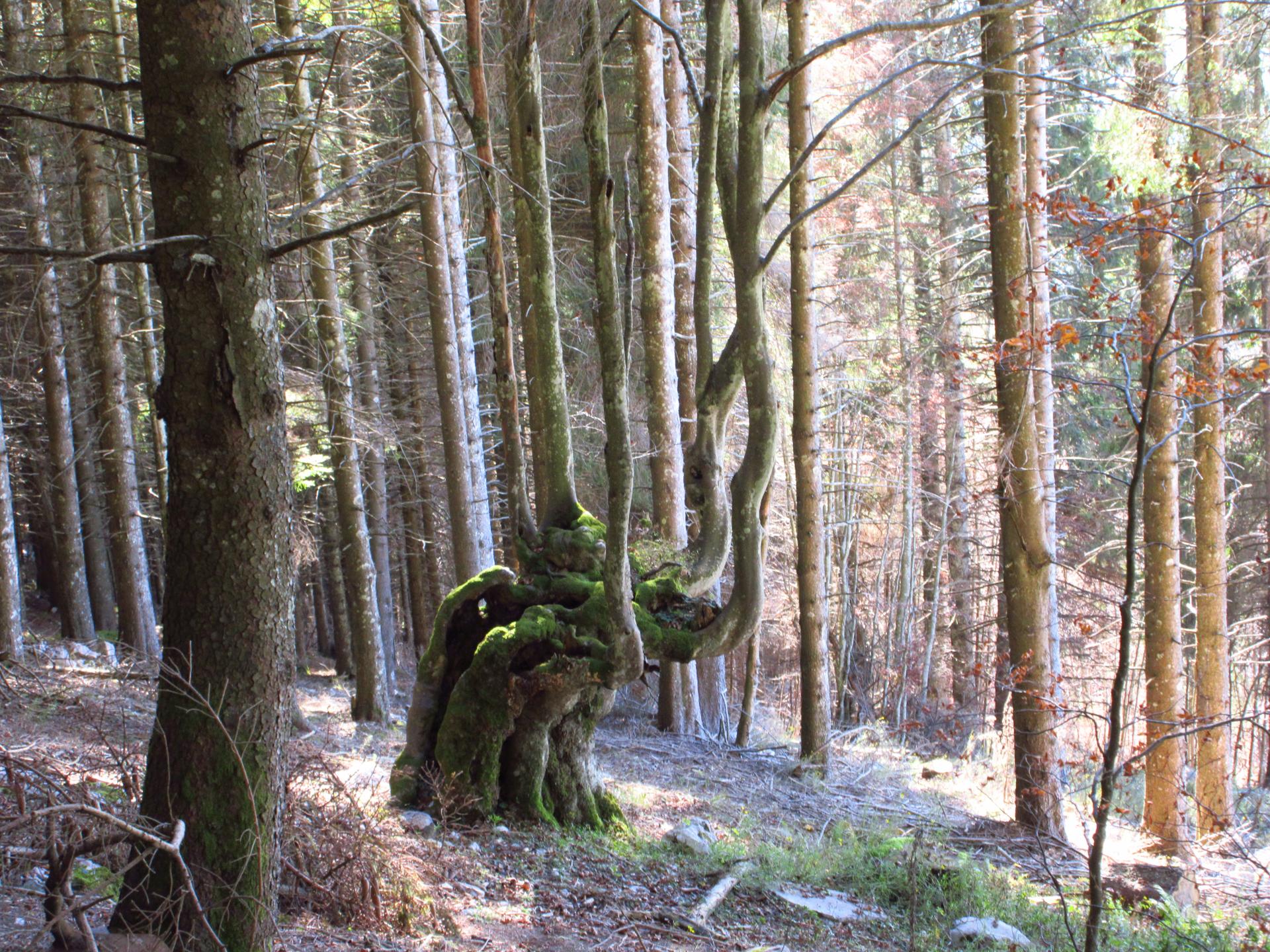 Rientrando nel bosco si iniziano a vedere in mezzo agli abeti alcuni faggi dalle strane forme.
