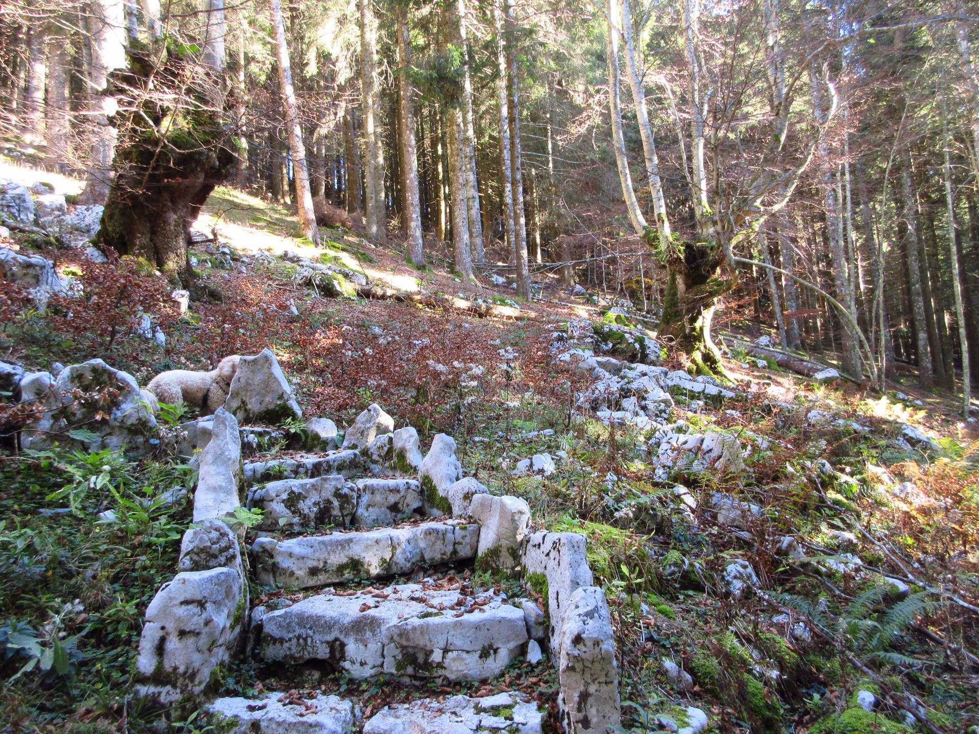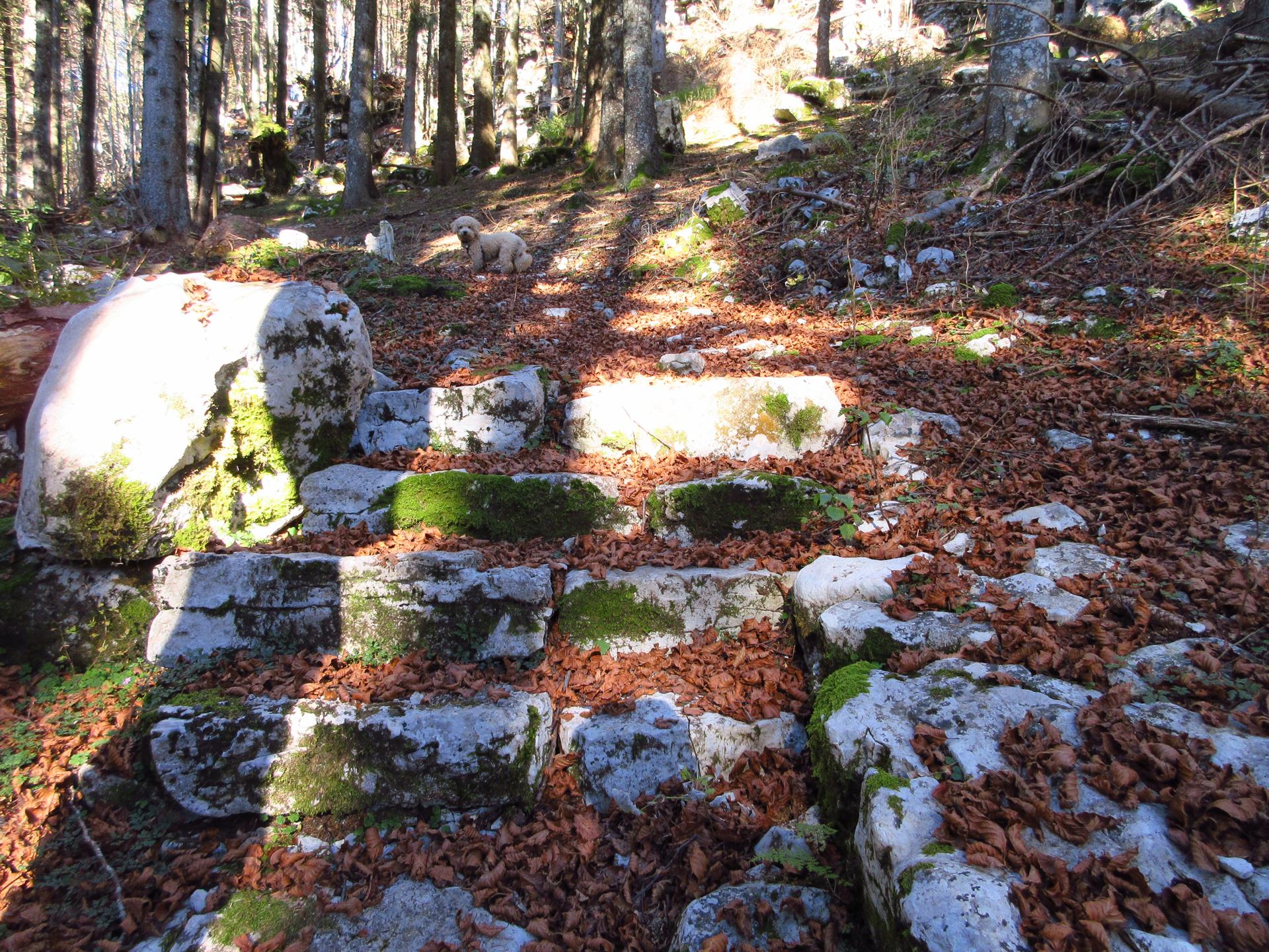 Ma oltre ai faggi alcuni gradini in pietra ci distolgono l'attenzione. Ma da chi e quando sono stati fatti?