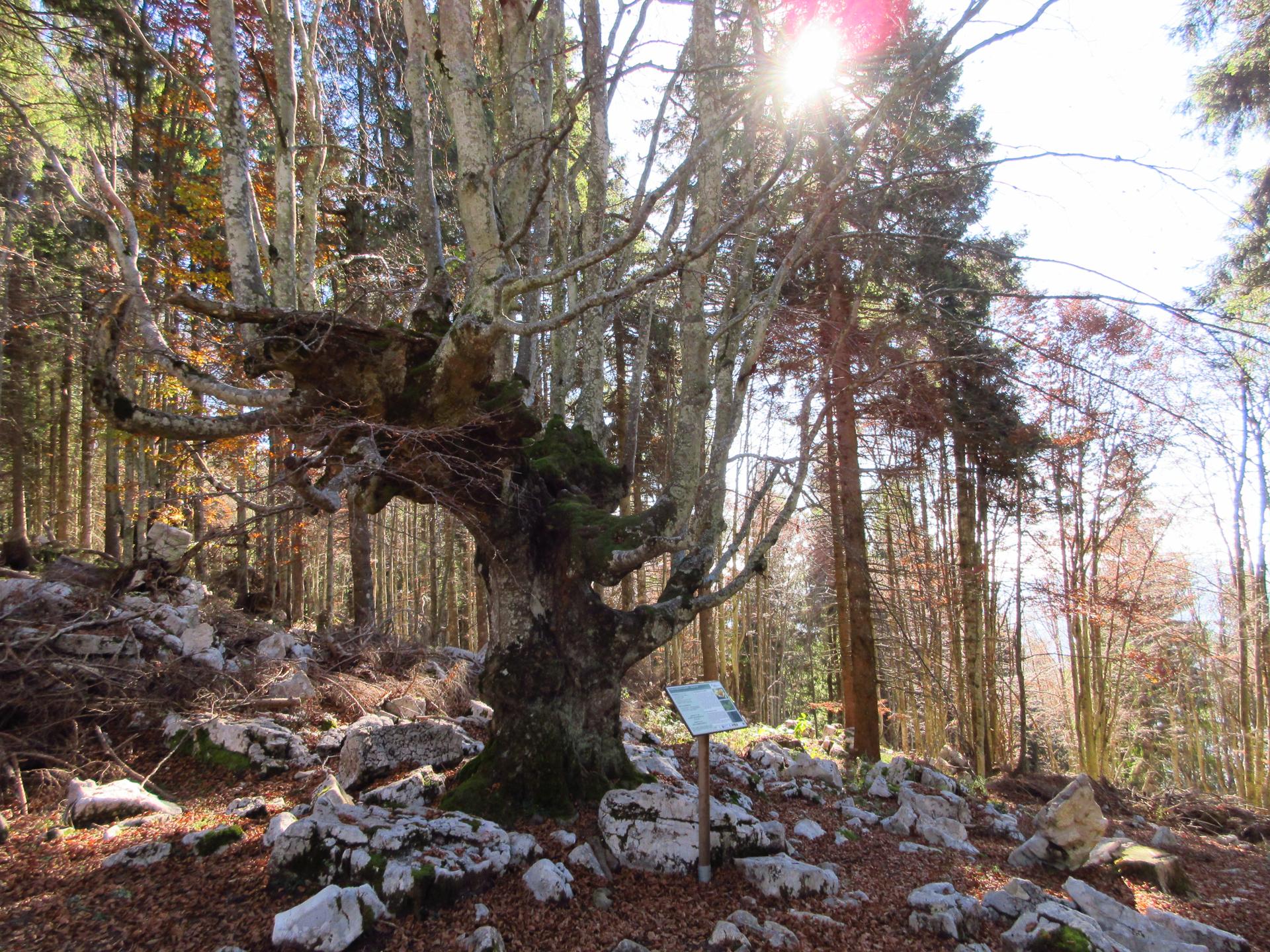Ormai al termine della salita e del bosco, ci accoglie un antico faggio al suo cospetto.