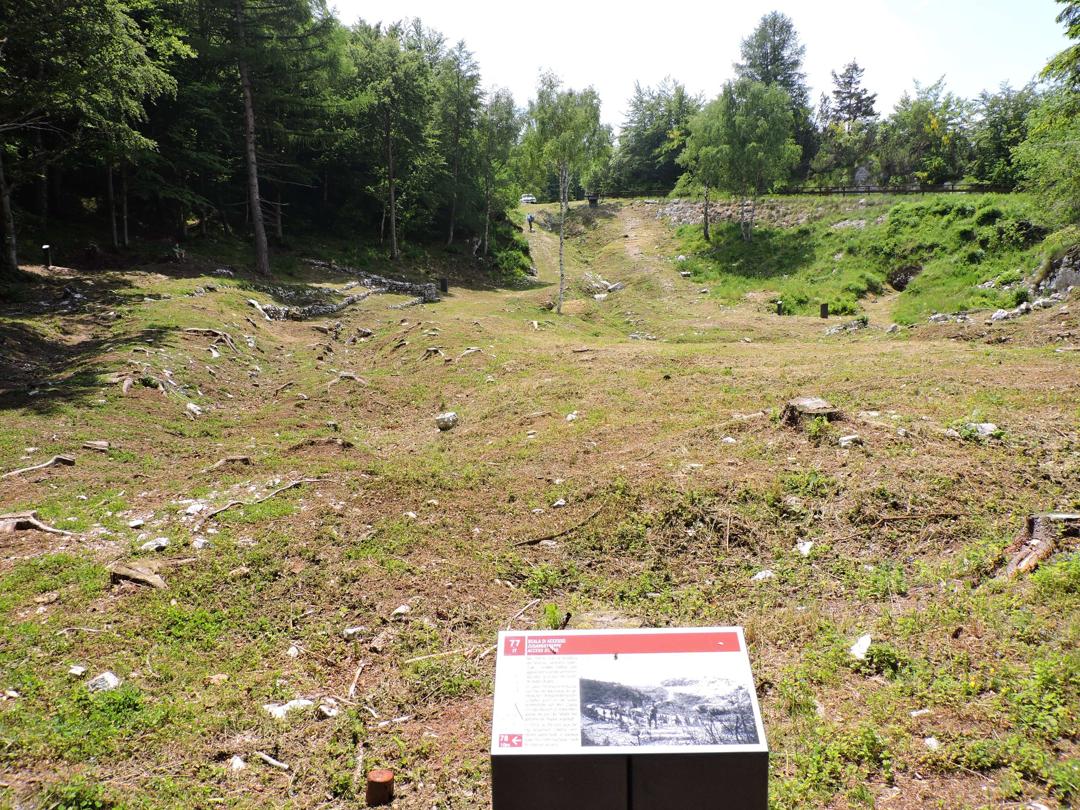 Lungo la strada e al riparo di questo costone venne posizionato il comando di un battaglione dei Kaiserschutzen, con un centralino telefonico, baracche e caverne ricovero per gli ufficiali e la truppa.