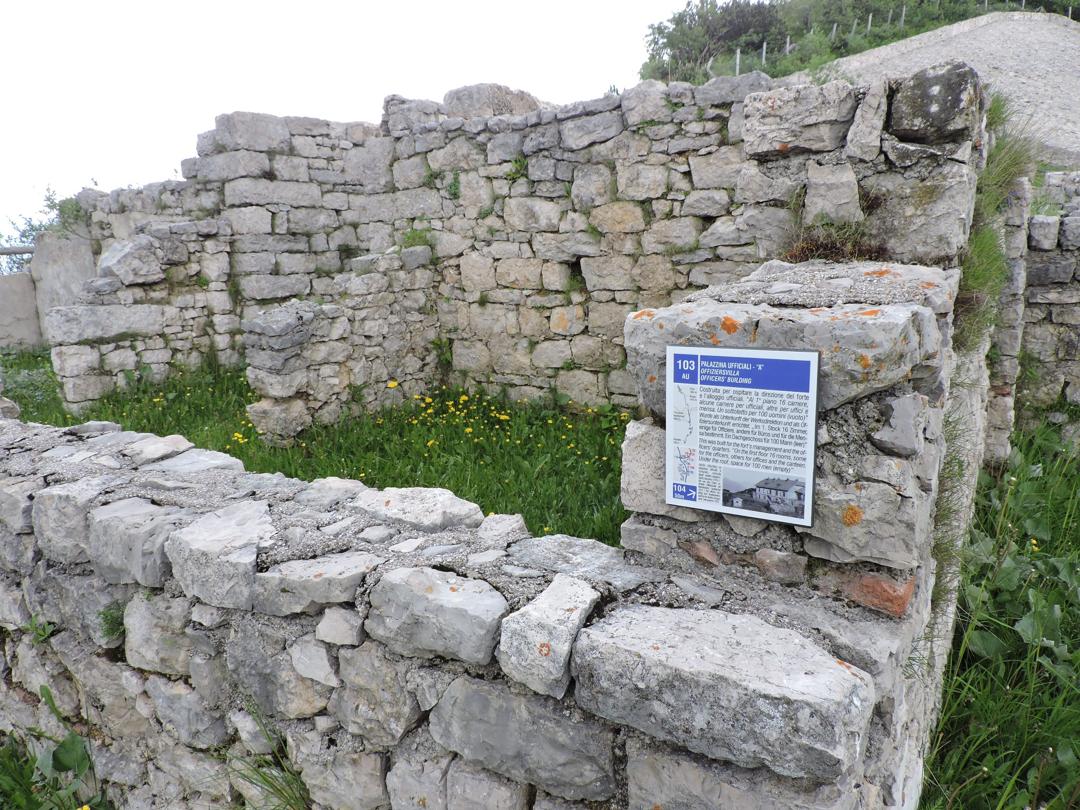 Oltre ai baraccamenti e l'acquedotto troviamo ricoveri in caverna, un piccolo cimitero ed un rifugio.