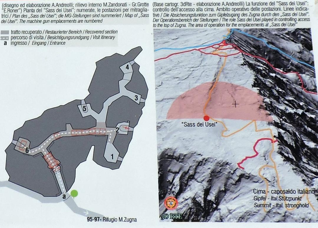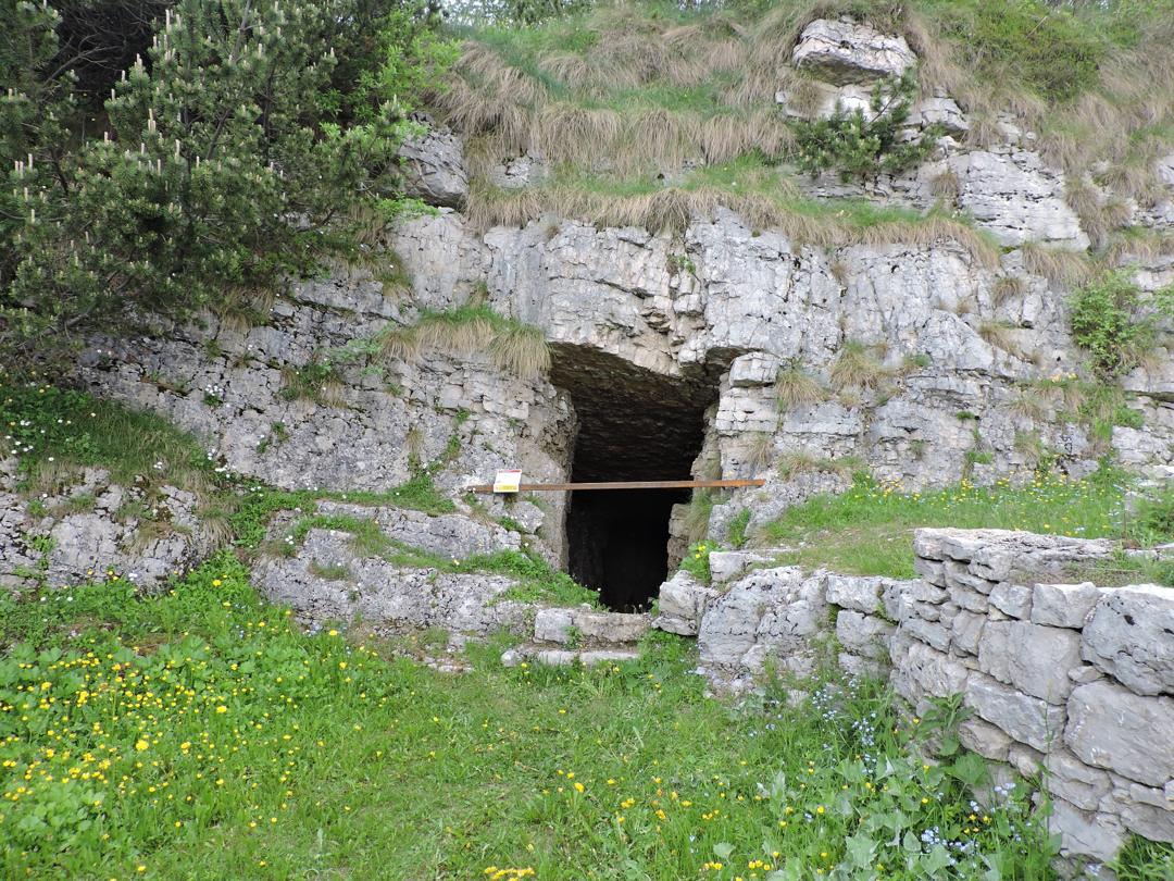 Poco sopra, nella caverna a ferro di cavallo, vi era un deposito di viveri, attrezzi e munizioni anche per la batteria di cannoni da montagna da 7,5 cm M.15 posizionata poco distante.