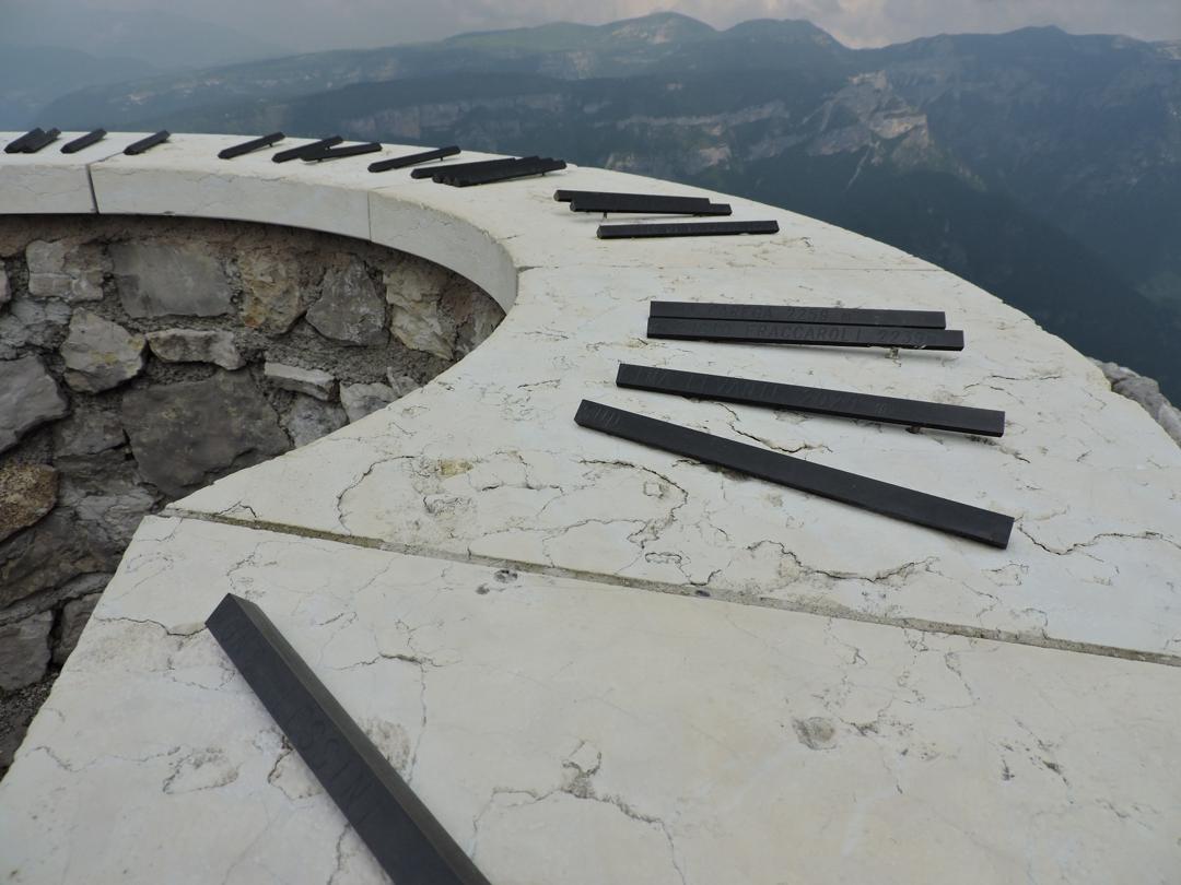 Su queste rocce, nell'ottobre del 1917, vennero collocati gli stemmi di 3 dei battaglioni del 2° reggimento kaiserschutzen che presidiavano queste linee.