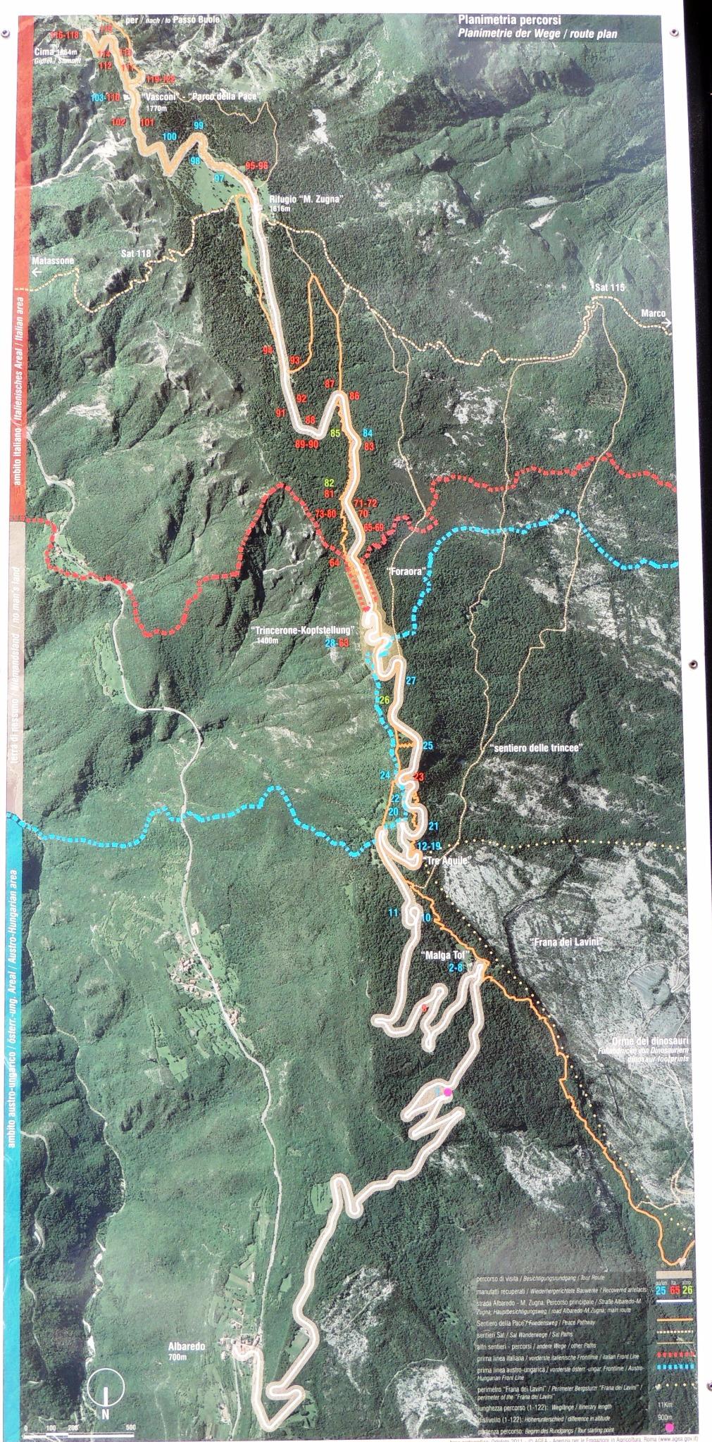 La strada che sale da Albaredo (TN) alla cima dello Zugna permette di attraversare per intero l'organizzazione del fronte della Prima Guerra Mondiale. Il percorso di visita segue la strada ed è impostato ad anello, è lungo circa 11 Km con un dislivello di 900m (è consigliabile farlo a tappe).