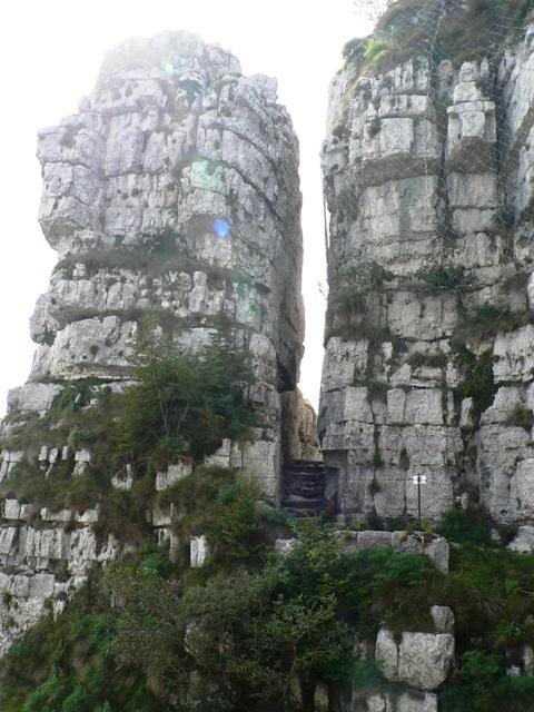 Il sentiero gira la montagna passando attraverso un crepaccio naturale.