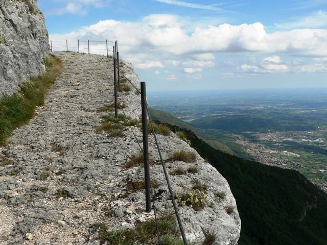Il sentiero continua in salita, prima con dei tornanti e poi di nuovo a strapiombo sulla valle. In alcuni tratti si nota come i militari abbiano sfruttato gli strati naturali della roccia.