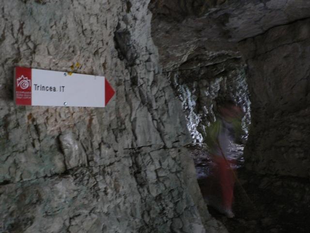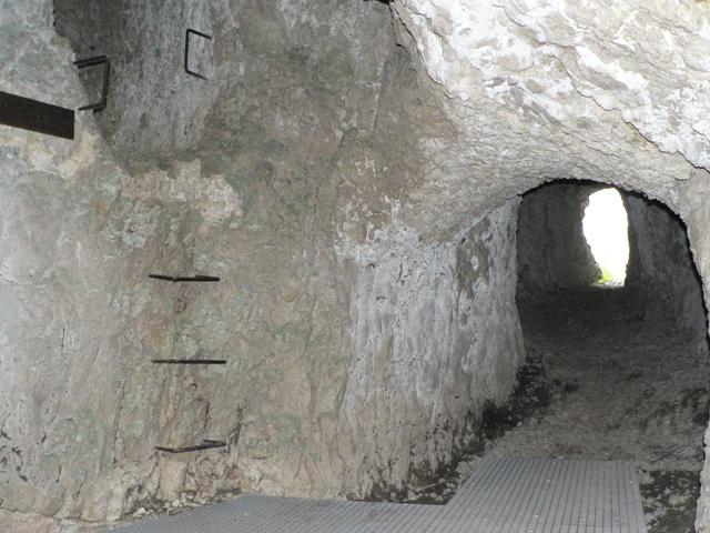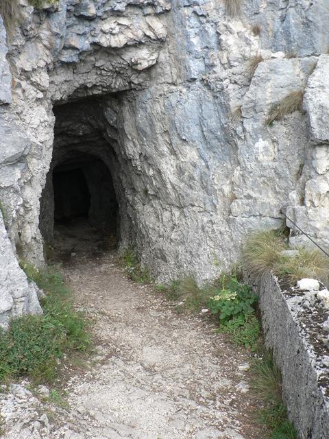 Fuori dal sentiero si trova un altra galleria che sbuca ad una postazione di artiglieria per 4 cannoni da 70 mm (leggi sotto i dettagli)