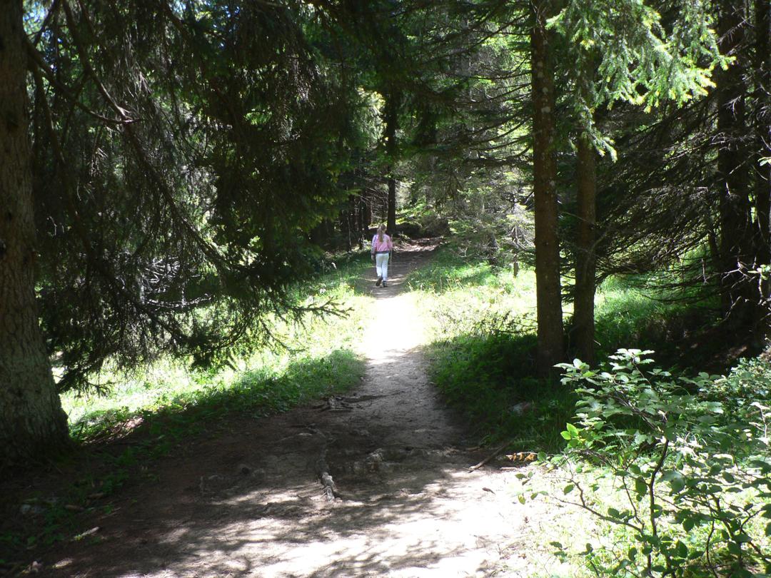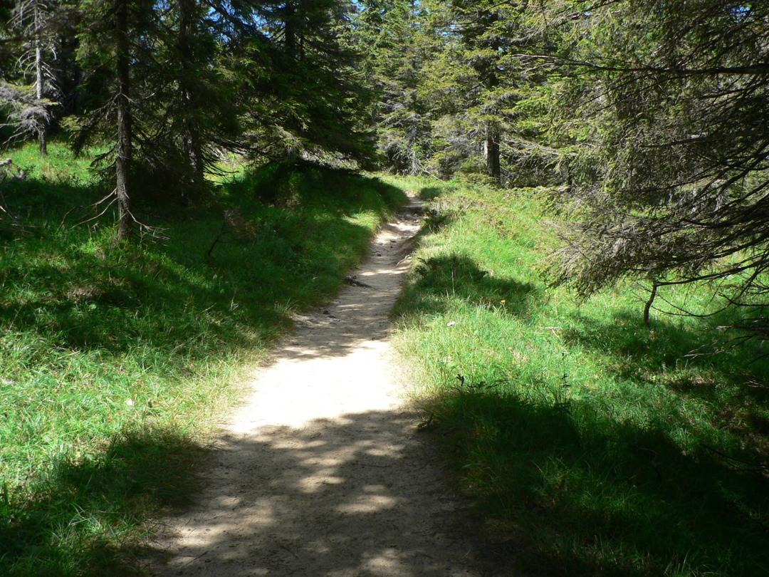 Il sentiero inizia di fronte all'Osteria Coe, prima in un prato erboso e poi all'interno di un bosco.