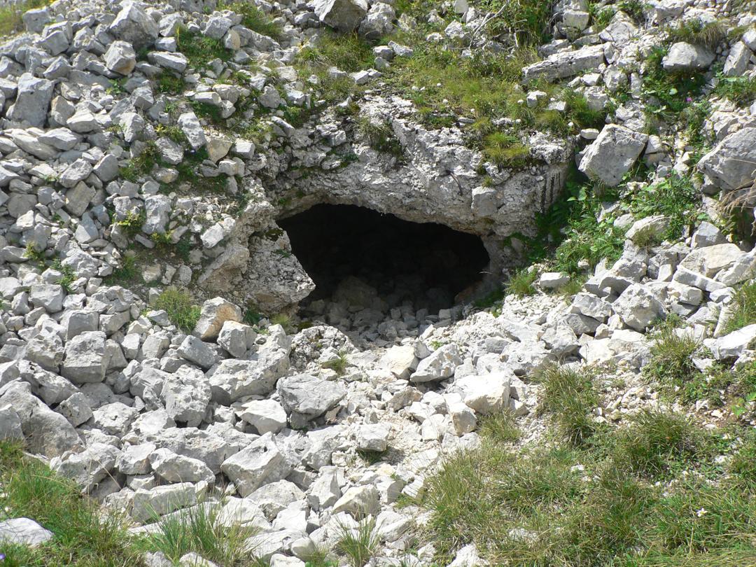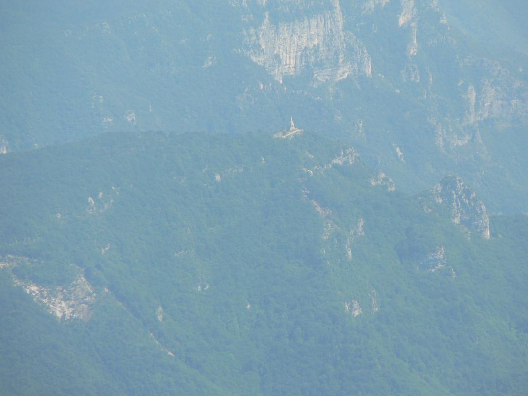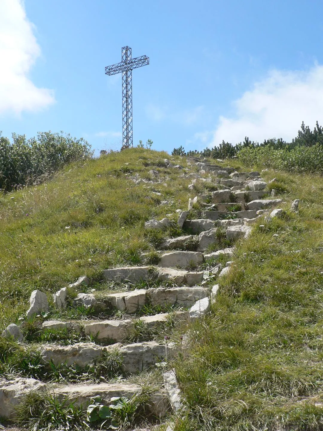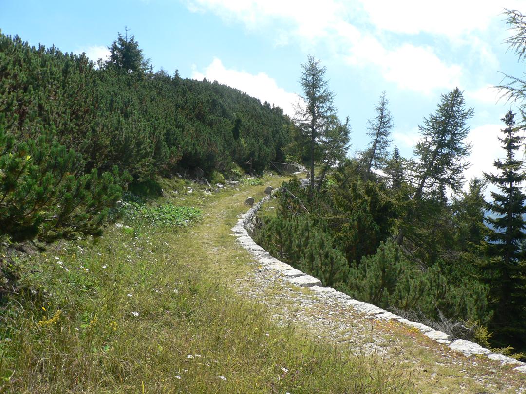 Quando si inizia ad intravedere la croce del monte sulla destra si trova un altro sentiero che permette di riscendere sull'altro crinale. E proprio dall'altra parte si scopre che esisteva un'altra strada fatta dagli austriaci per poter salire sulla cima in modo più protetto dal fuoco nemico.