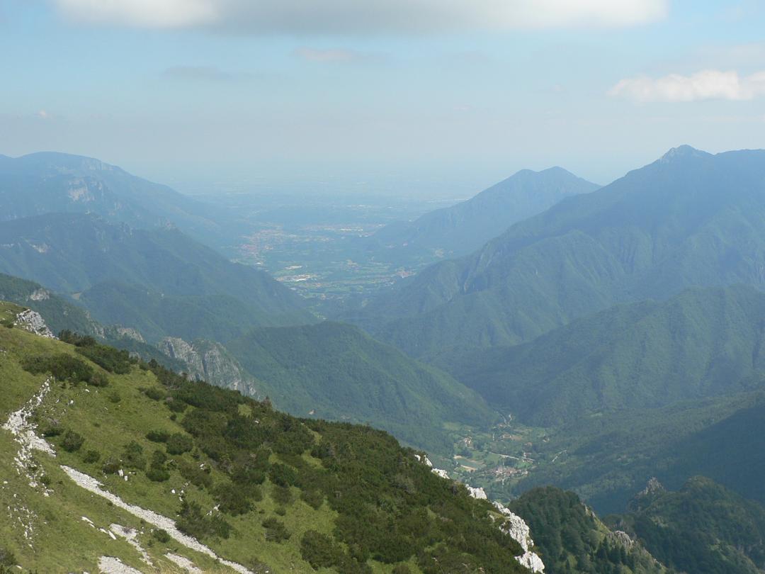 Nei panorami, (in successione) oltre alle montagne trentine, molto particolare è la valle di Posina con una vista a Laghi, uno scorcio dell'altopiano di Asiago, del cippo del Monte Cimone ed il vicino Monte Campomolon con (nella stessa foto) una vista su Cima XII.