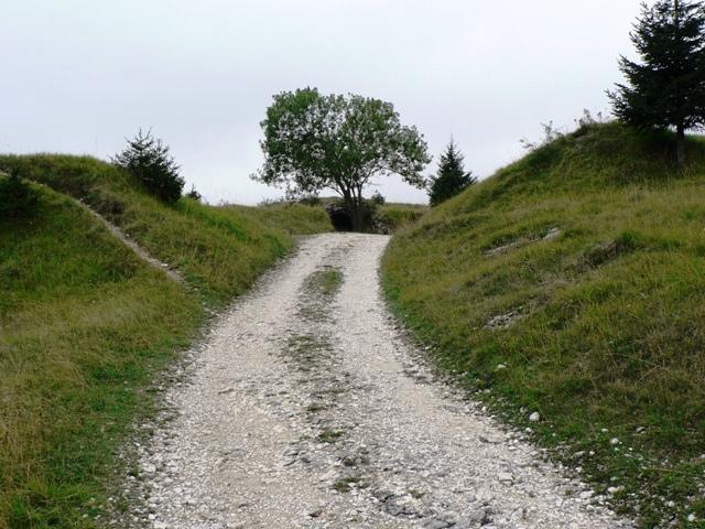 Ma ecco, dopo lo scollinamento della strada, si nota una specie di piazzale riparato da una costa di circa 3 metri di altezza.