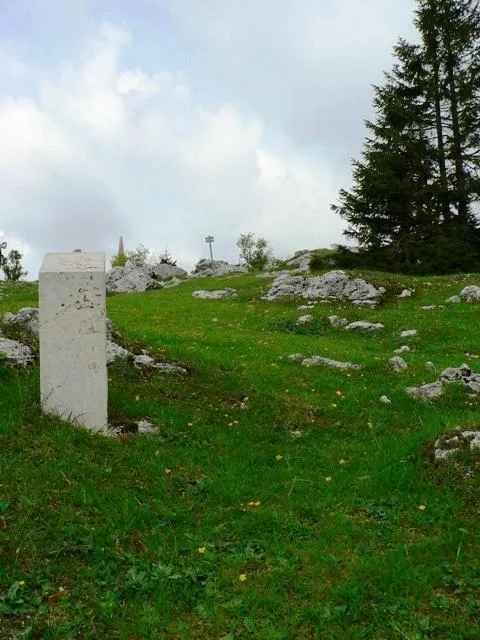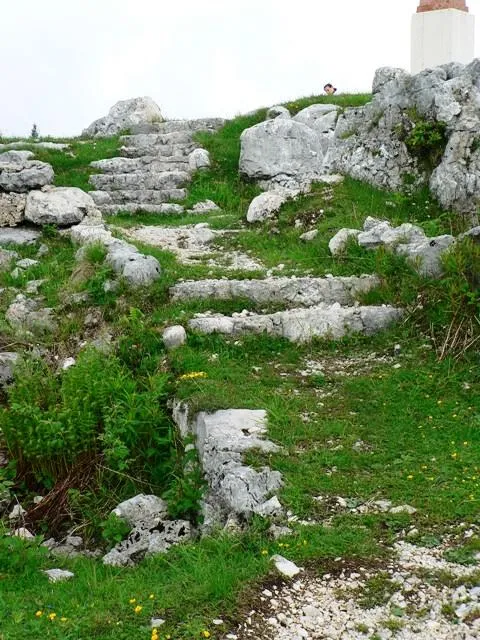 Dei piccoli cippi delimitano la zona sacra, siamo arrivati sulla cima della Lunetta.