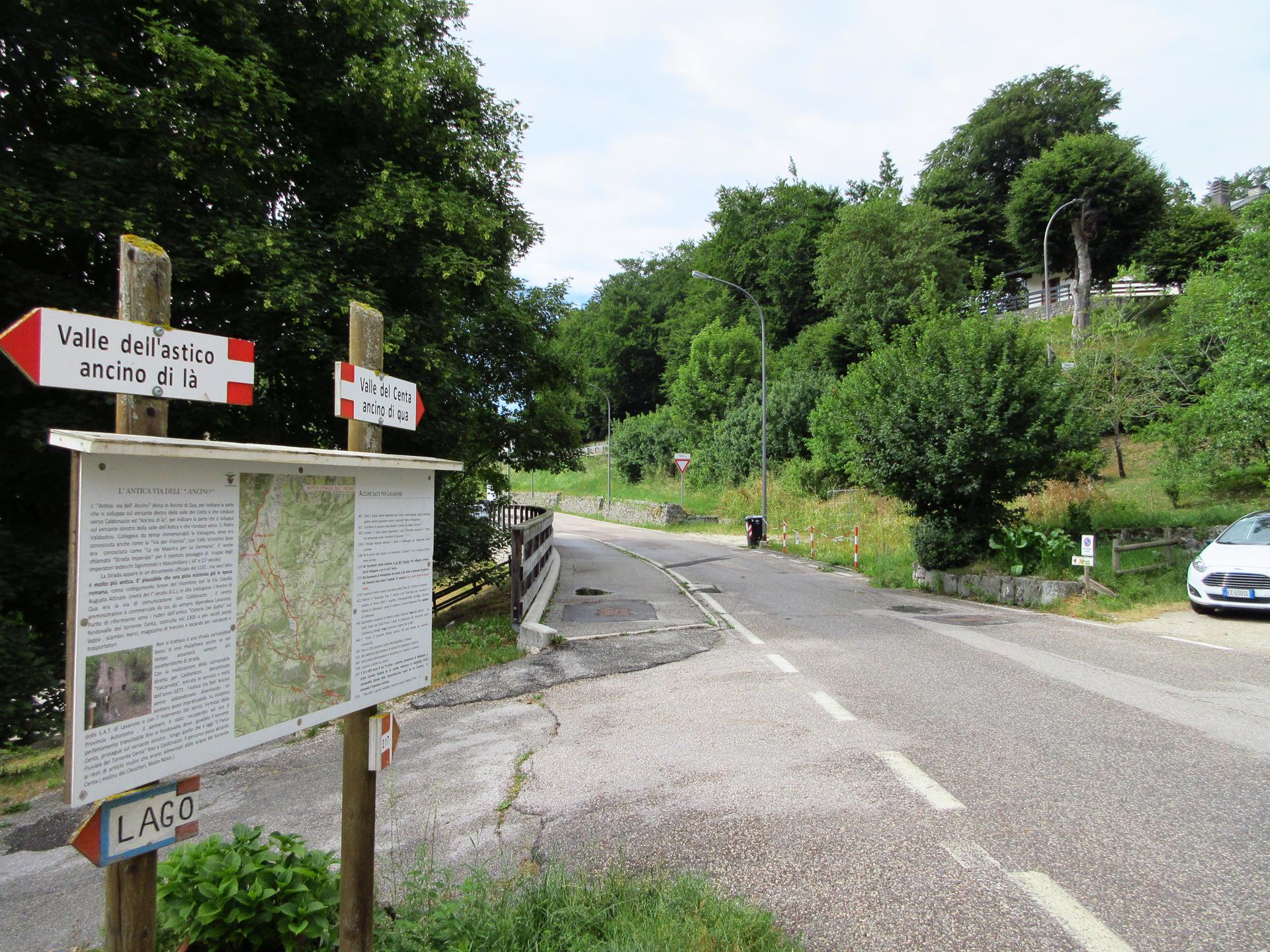 Si ritorna percorrendo la strada che ci ha portato in cima fino e al primo incrocio si svolta a destra. Le indicazioni da seguire sono per il lago di Lavarone.