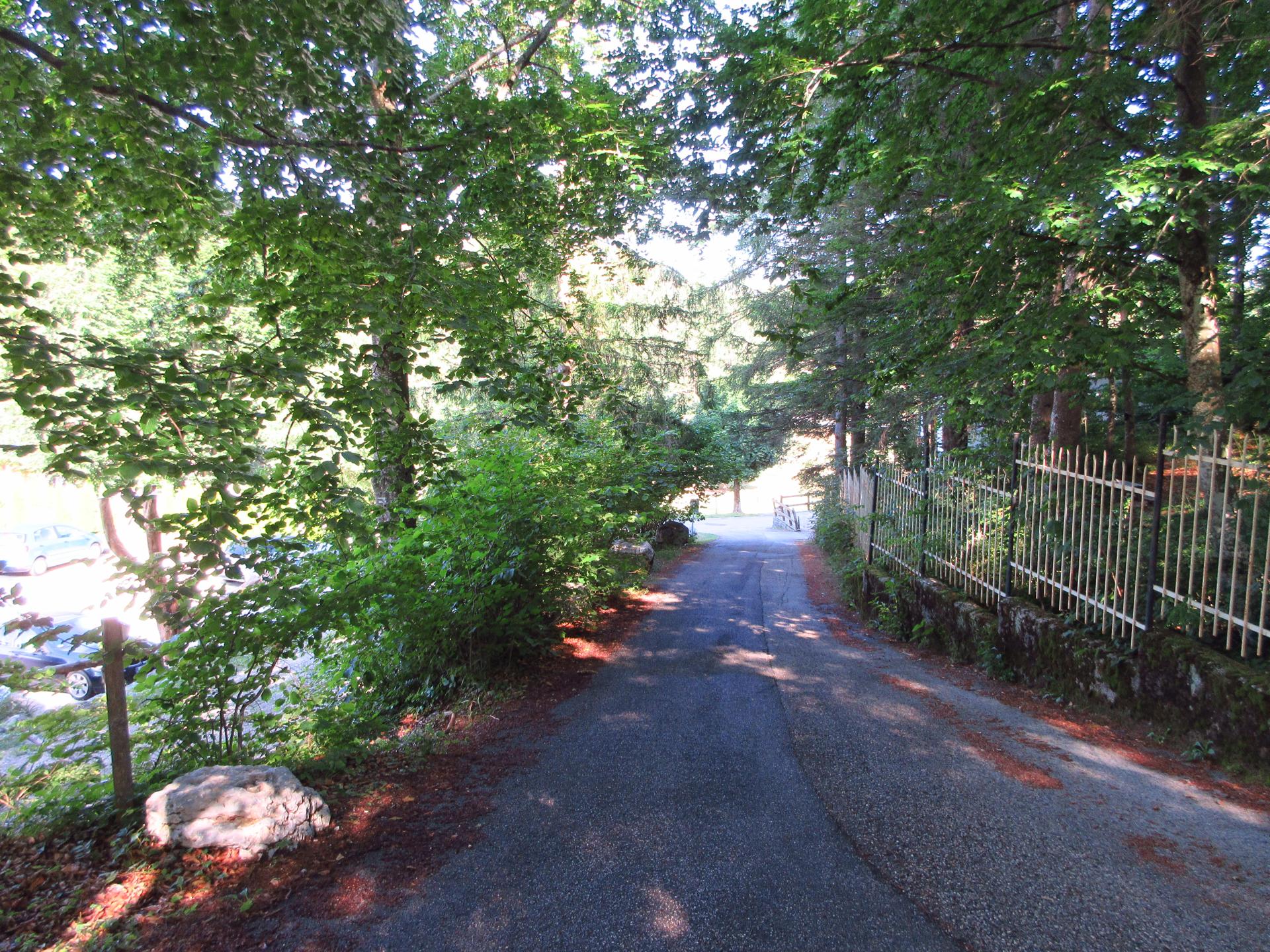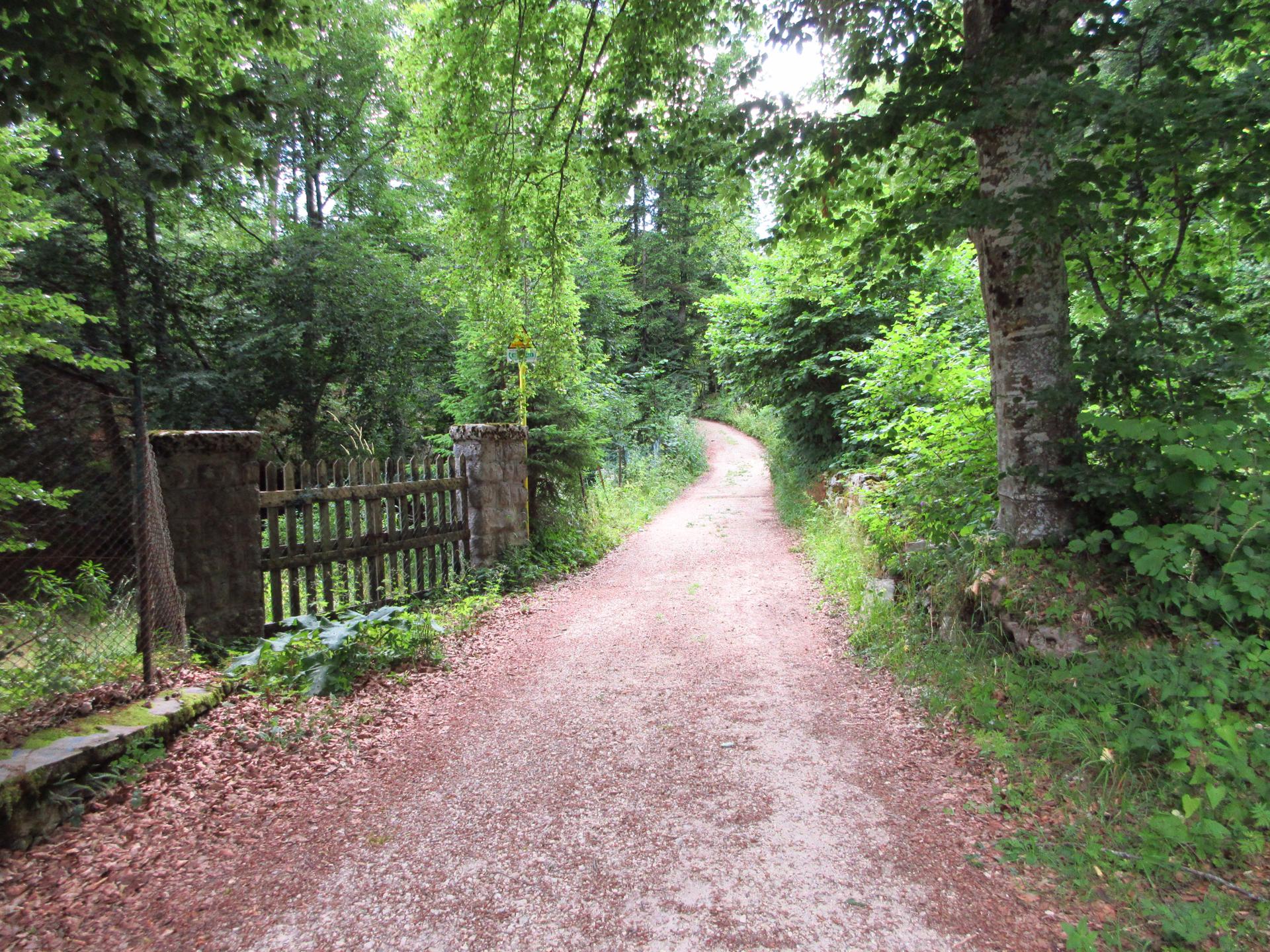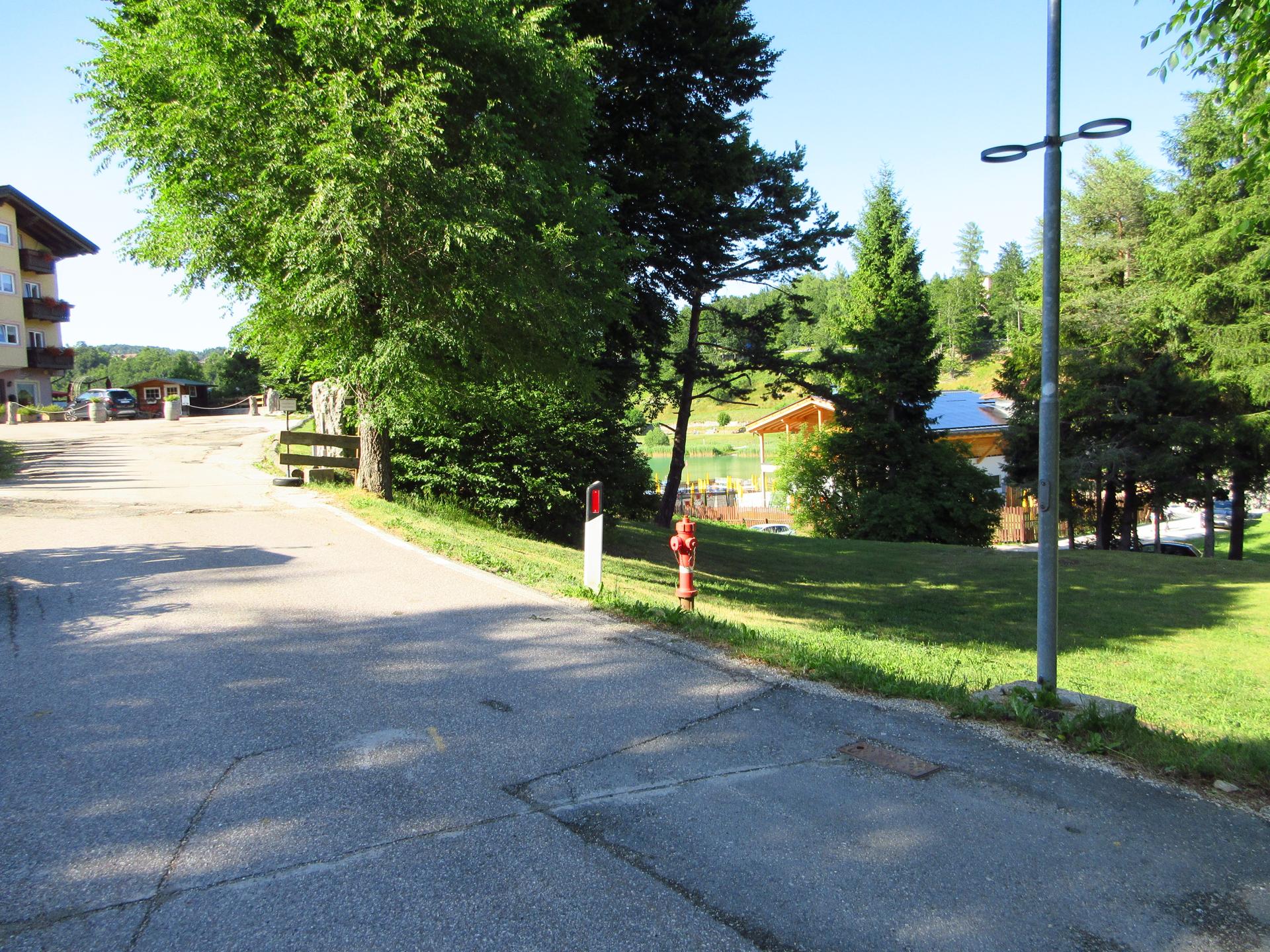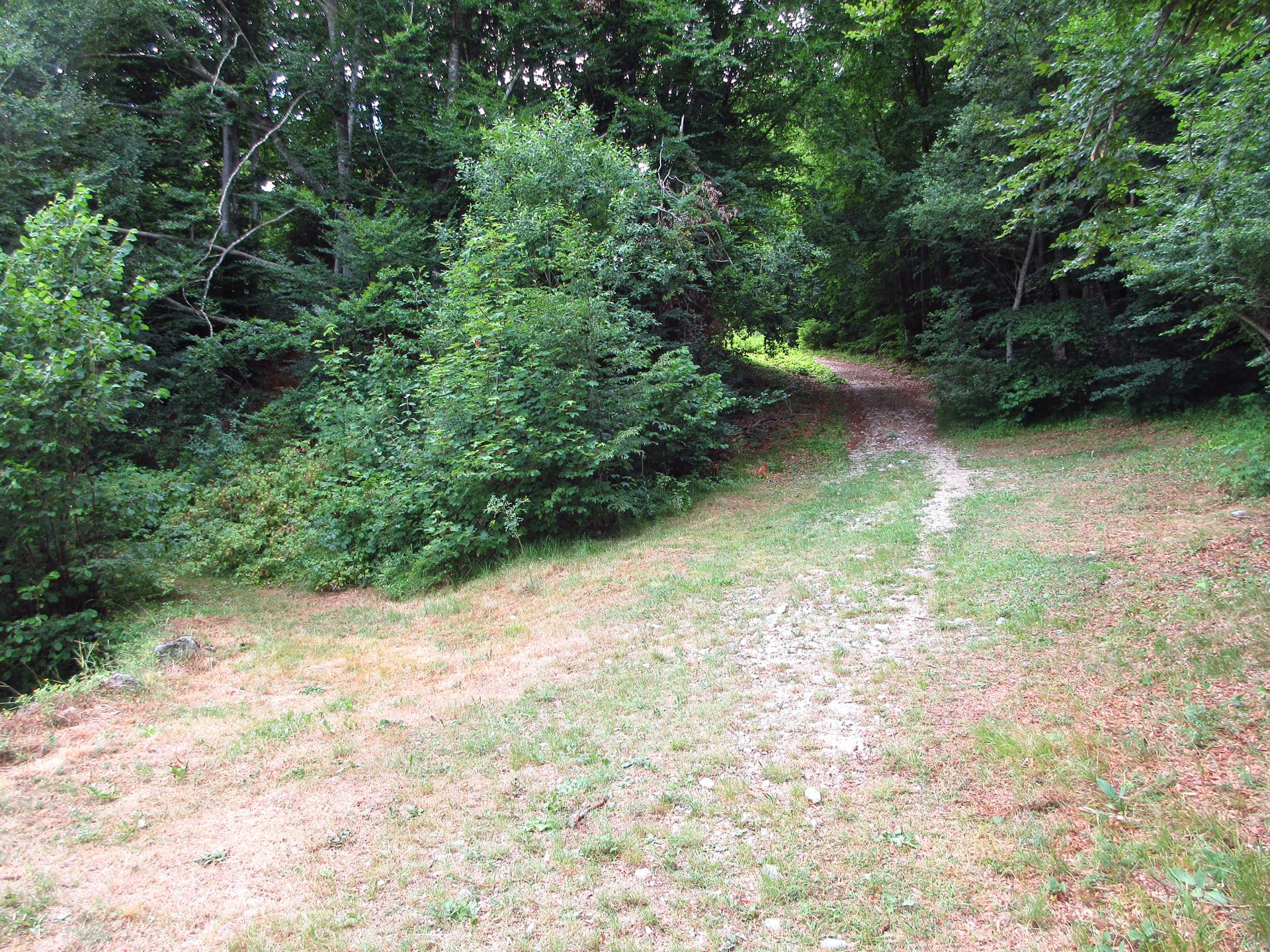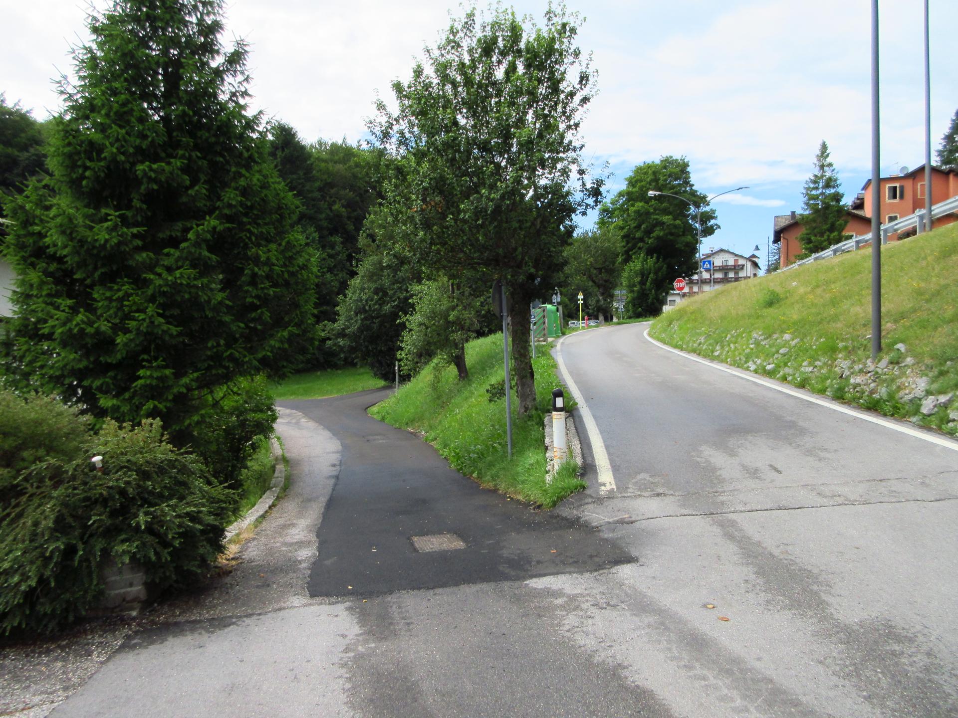 Il sentiero sbocca in una stradina asfaltata, al termine della stessa si taglia attraverso il prato prendendo il sentiero nei pressi dell'idrante.
