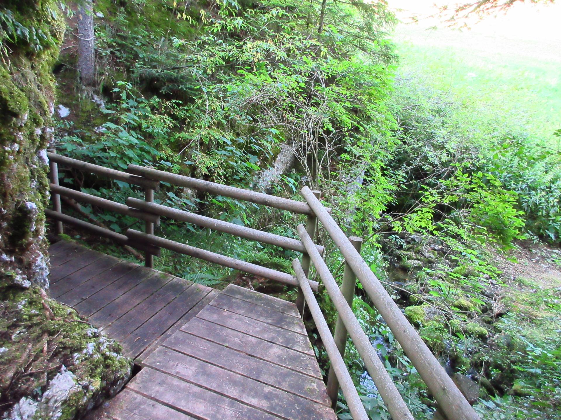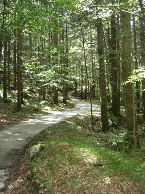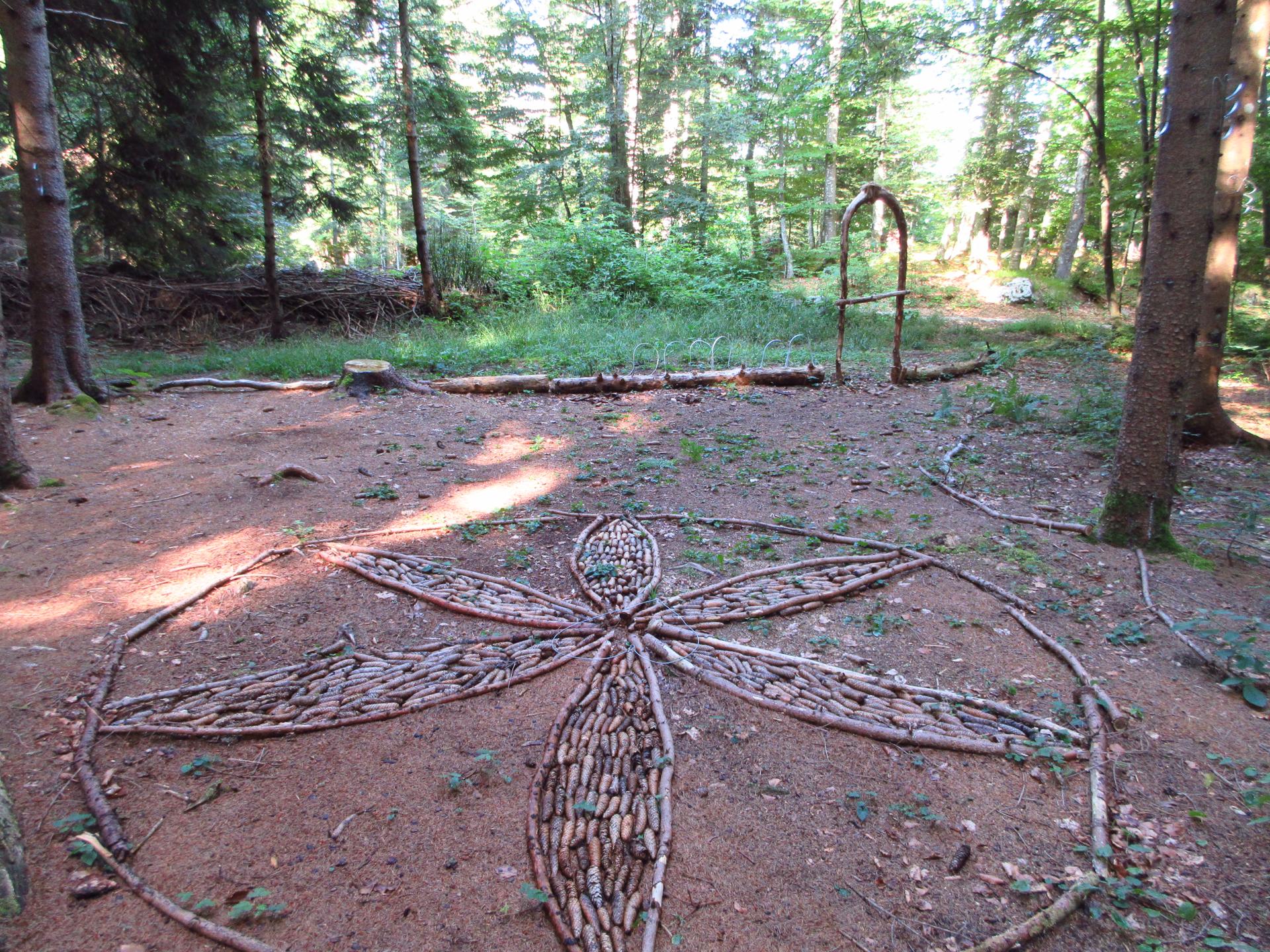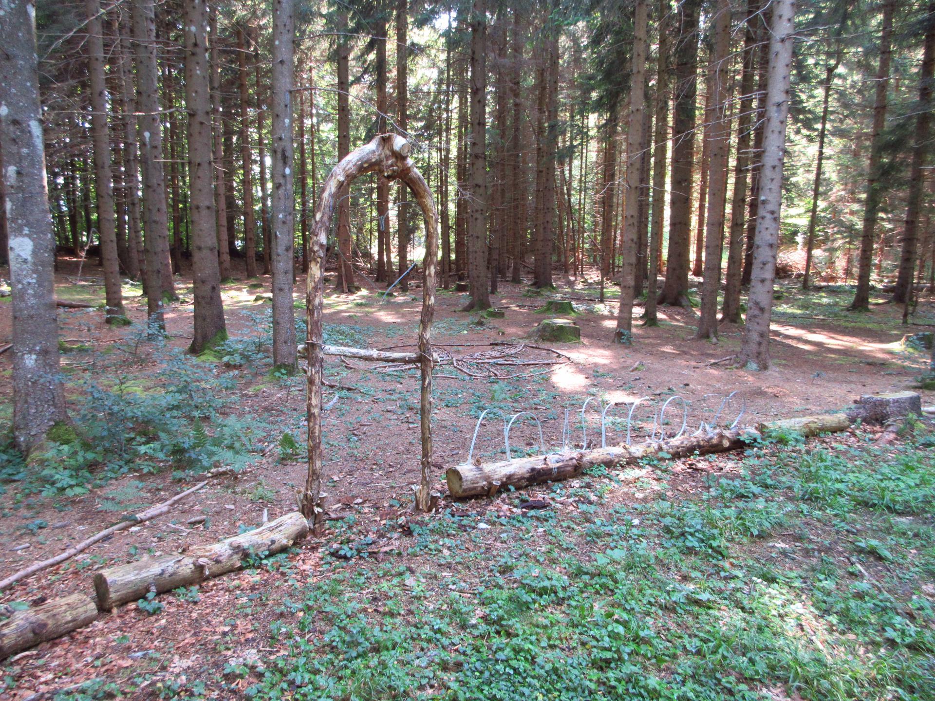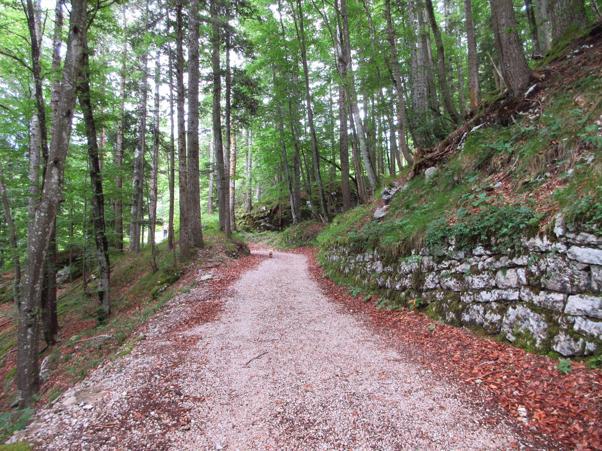 Dopo altri due incroci ben segnalati ed una discesa piuttosto ripida si arriva in un'area boschiva pianeggiante sapientemente abbellita.