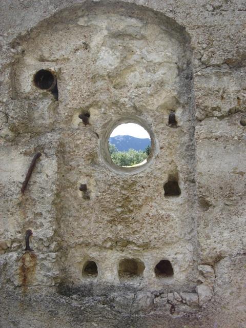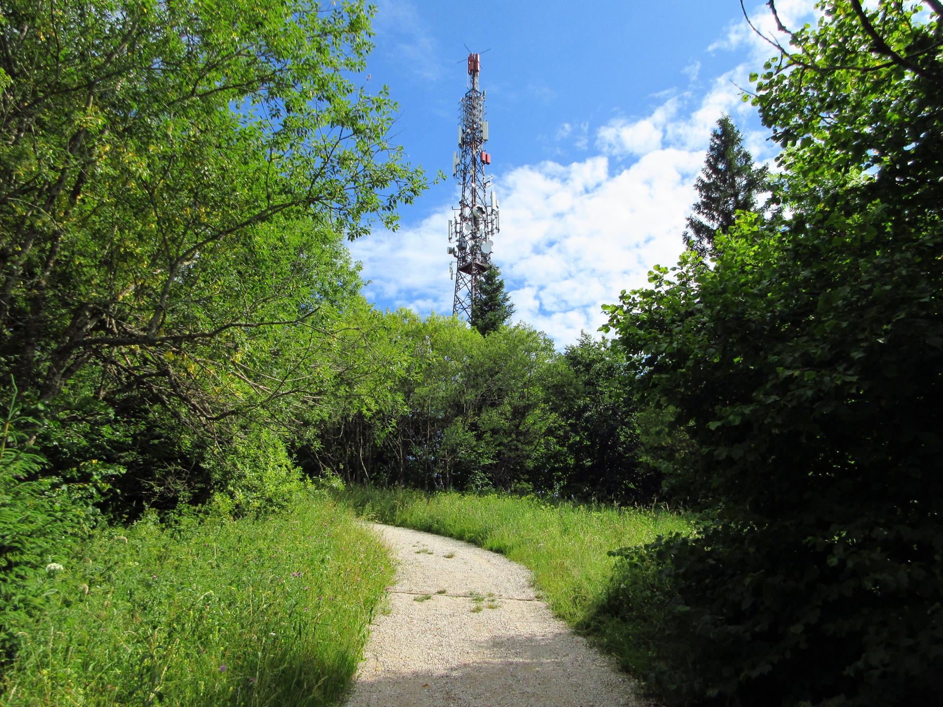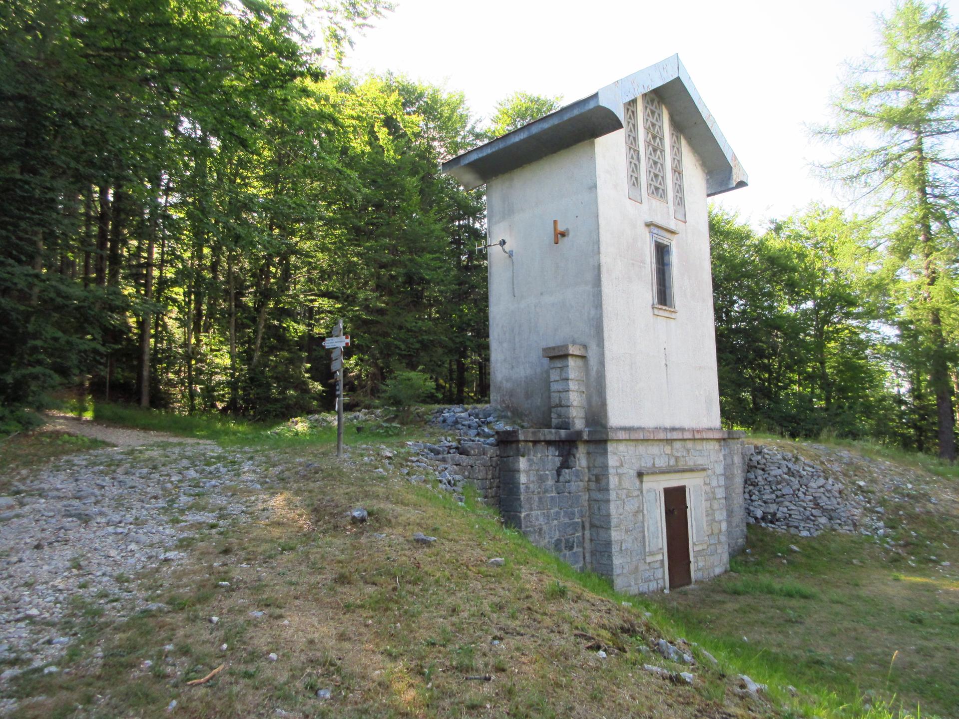 Si raggiunge la cima dove si trova la stazione di collegamento. Nell'edificio, di dimensioni ridotte, sono visibili i punti dove dovevano essere ancorati gli impianti ottici.