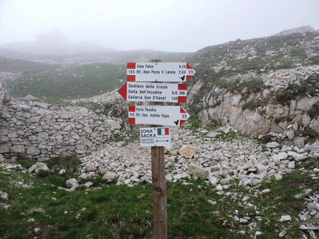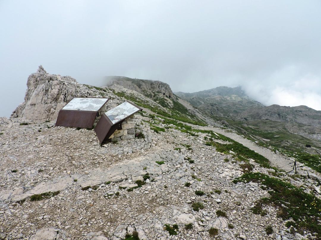 Purtroppo le nuvole hanno celato il panorama, panorama che invece è stato volutamente cancellato dalle tabelle dell'Ecomuseo della Grande Guerra. O forse, trovando spesso condizioni meteorologiche come quelle che abbiamo trovato noi, hanno tentato di rendere le tabelle più simili al panorama effettivo.