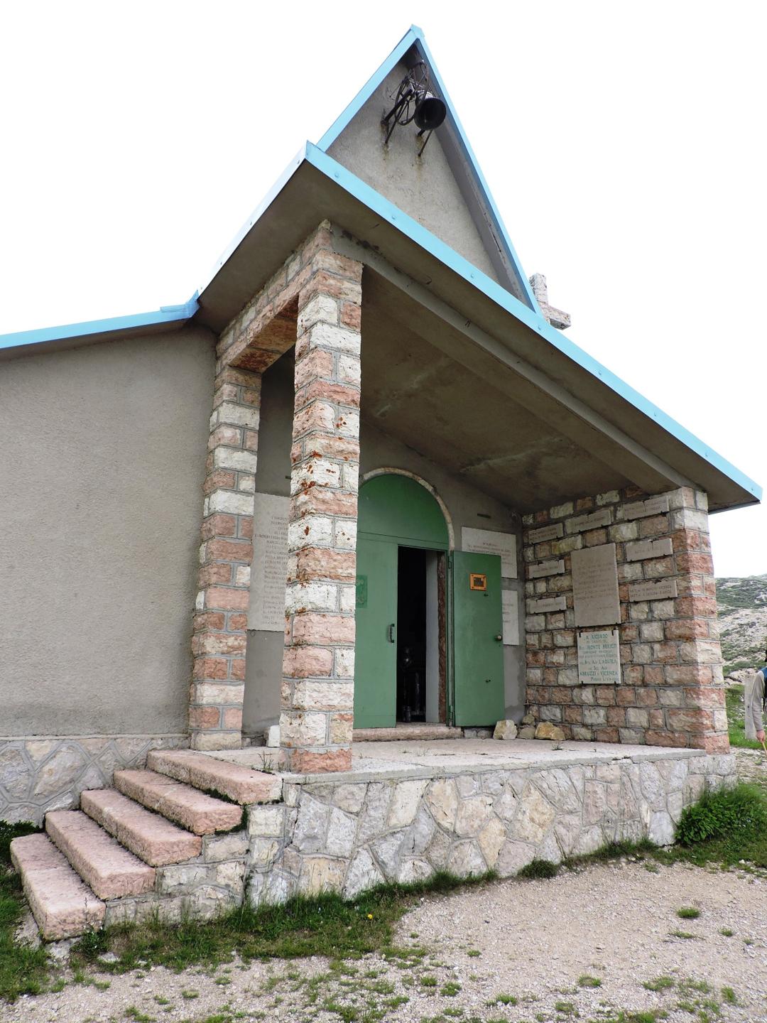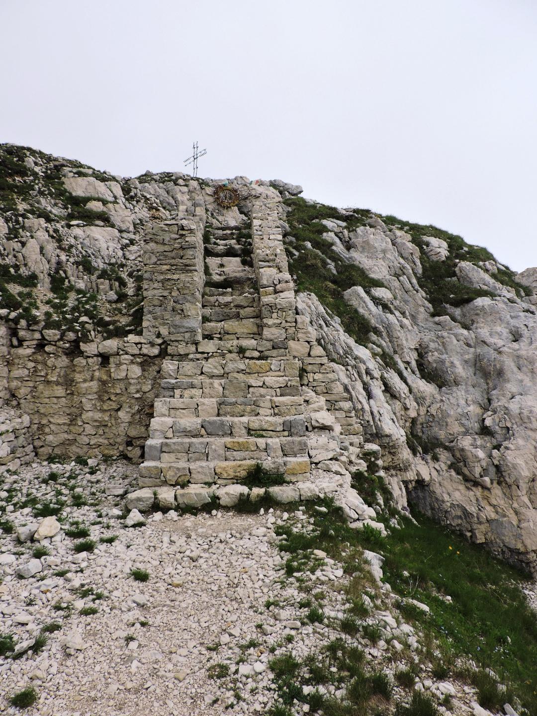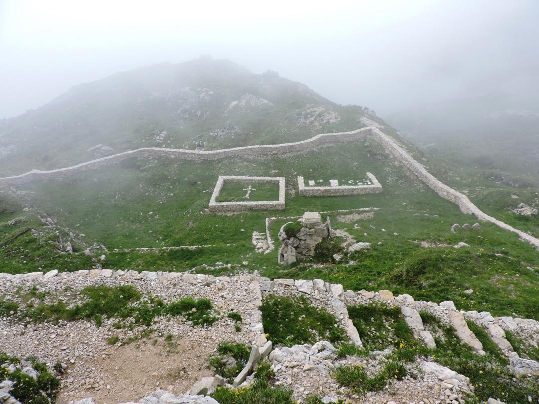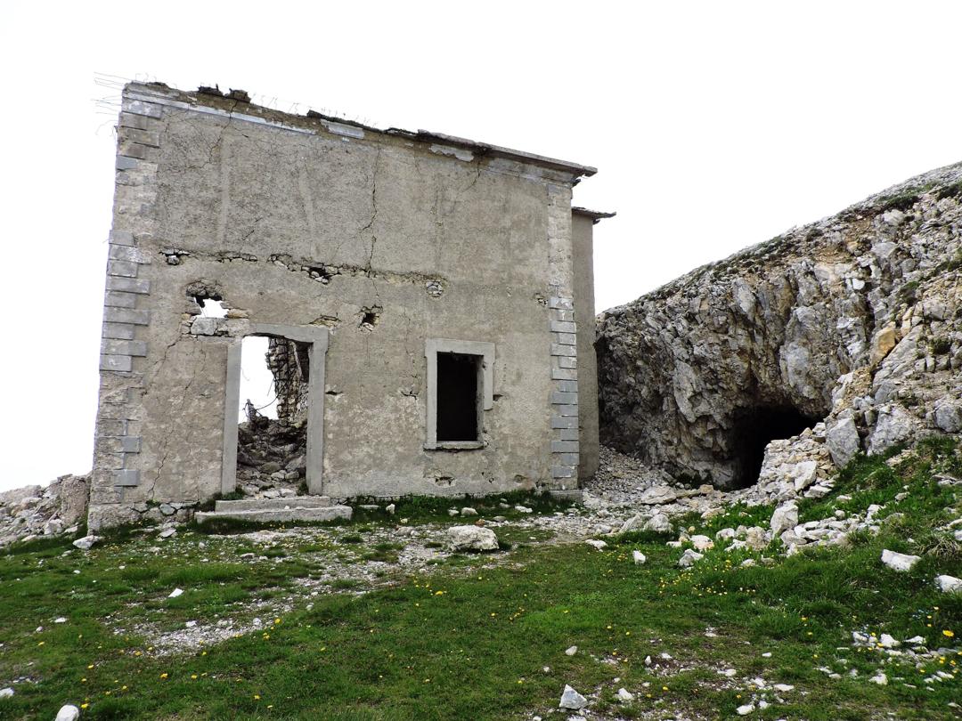 Un'ora di cammino dal Rifugio Papa al Cogolo Alto. Qui, oltre a postazioni, ricoveri e cisterna in galleria, si trovano i ruderi di un edificio che era l'abitazione del custode della zona sacra (leggi la storia a fondo pagina).
