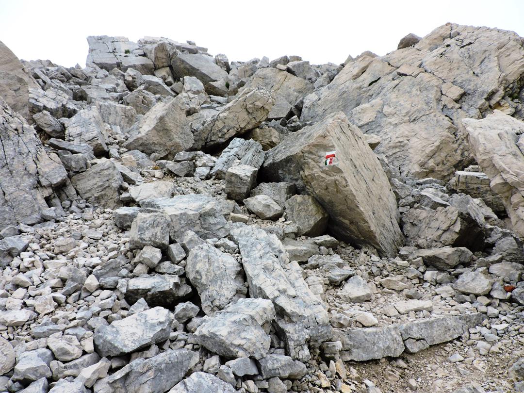 Dopo la croce si inizia a scendere lungo una parete completamente divelta. Ad ogni sasso il pensiero di quanto dovevano essere state devastanti le esplosioni. (leggi la storia a fondo pagina).
