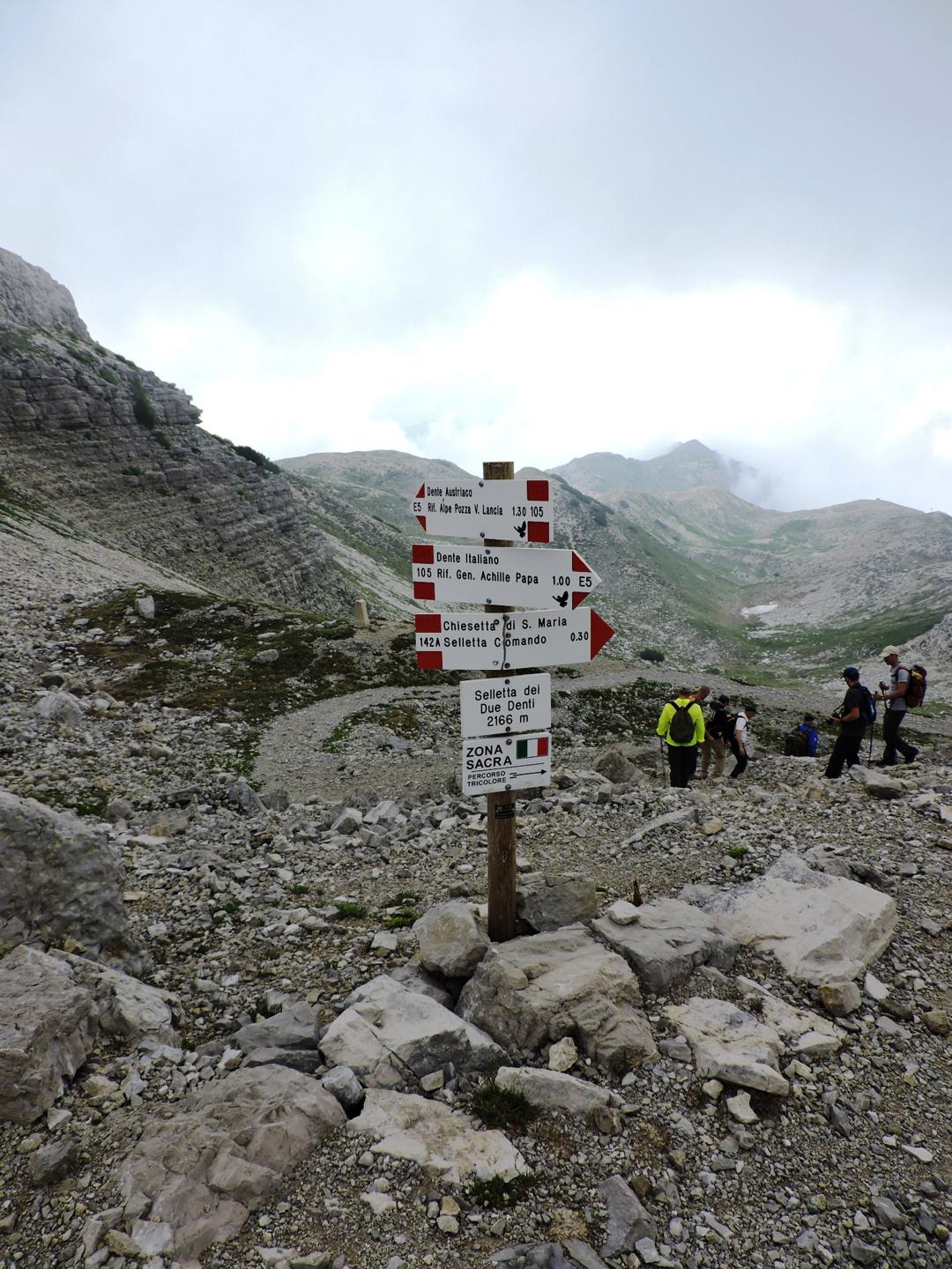 Da qui, in un attimo, si arriva sotto il Dente Italiano, entrando nella "galleria alta del Dente", un altro complesso di gallerie con sbocchi per la difesa del Dente.