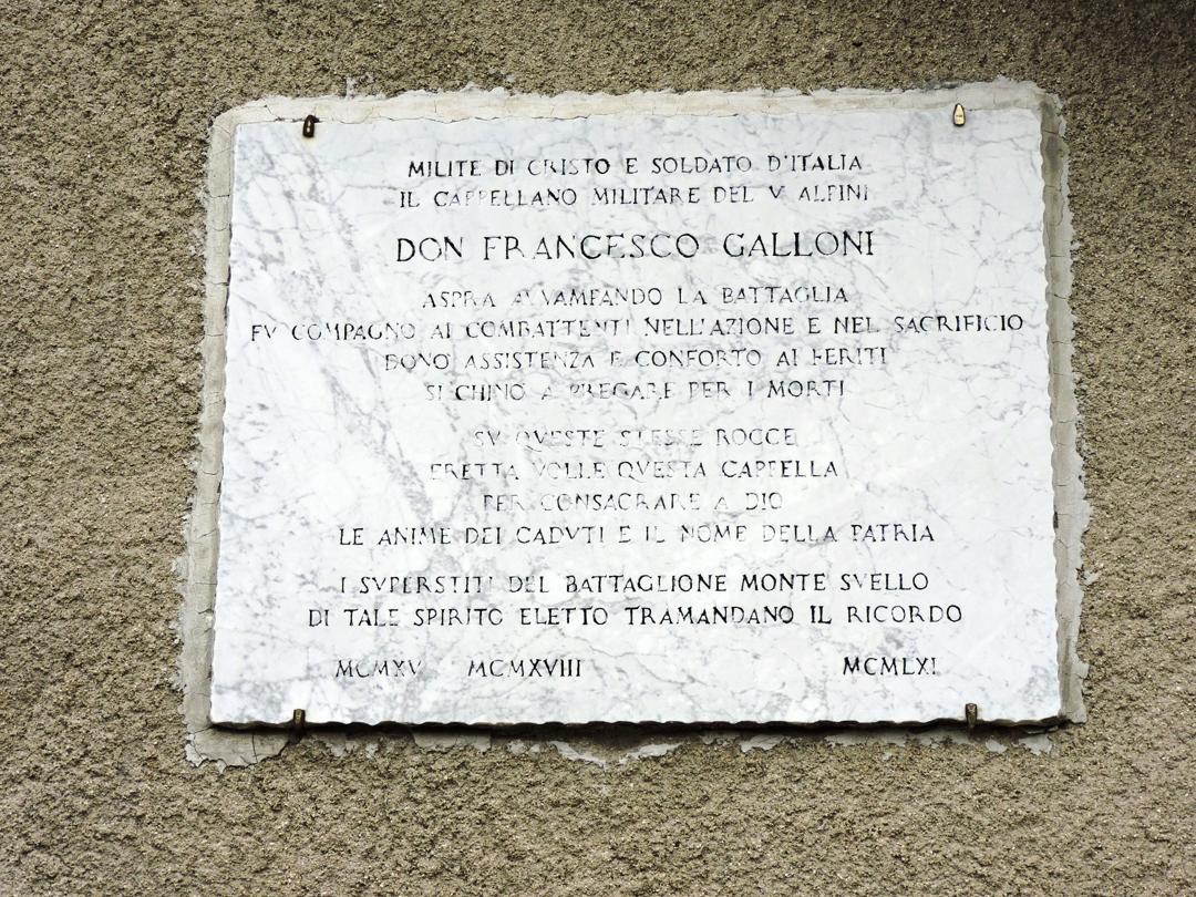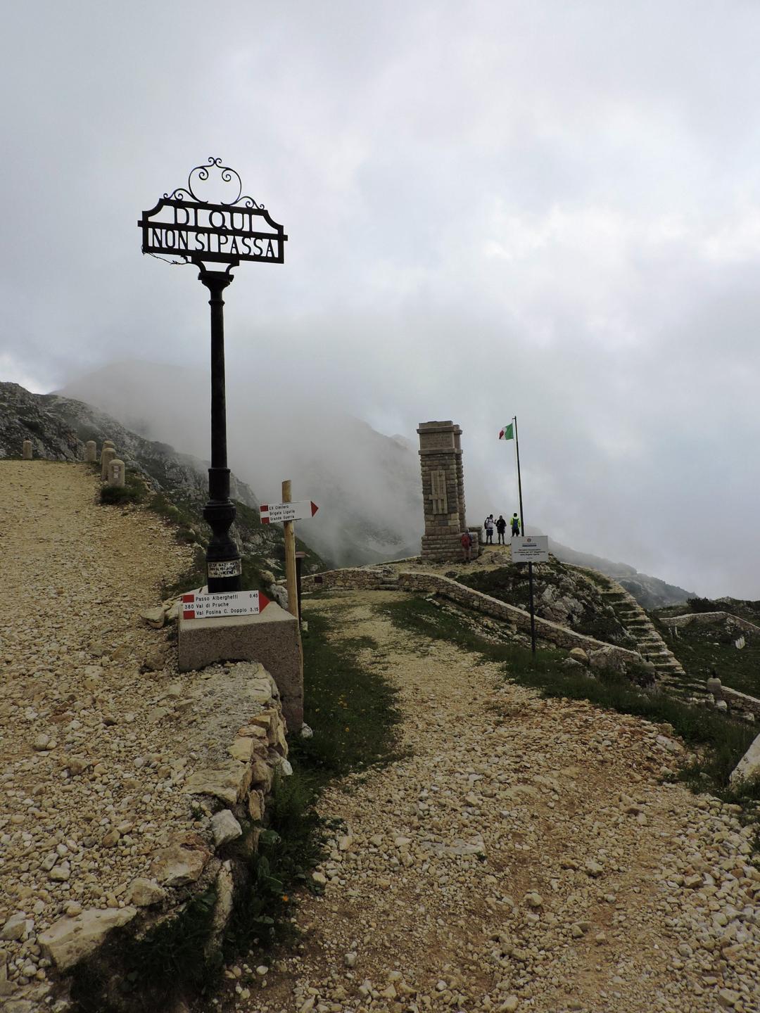 Il 12 settembre 1926, a cura dei Mutilati di guerra vicentini, fu posta la scritta "Di qui non si passa", un motto che la Brigata Liguria si meritò dopo la sanguinosa battaglia di Monte Zovetto del giugno 1916. Nel 1928 le salme dei caduti furono esumate e trasportate nel Sacello Ossario del Pasubio sul Colle Bellavista, dove riposano con quelle di oltre 5.000 combattenti in esso custodite.