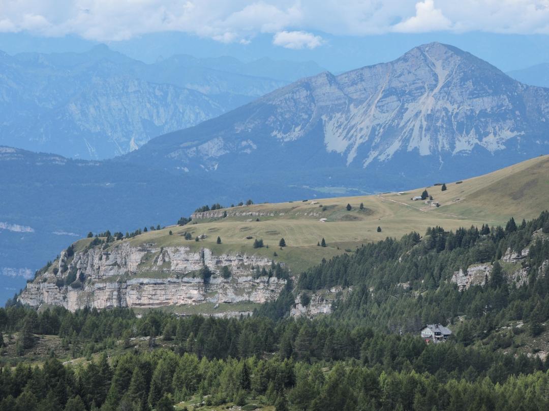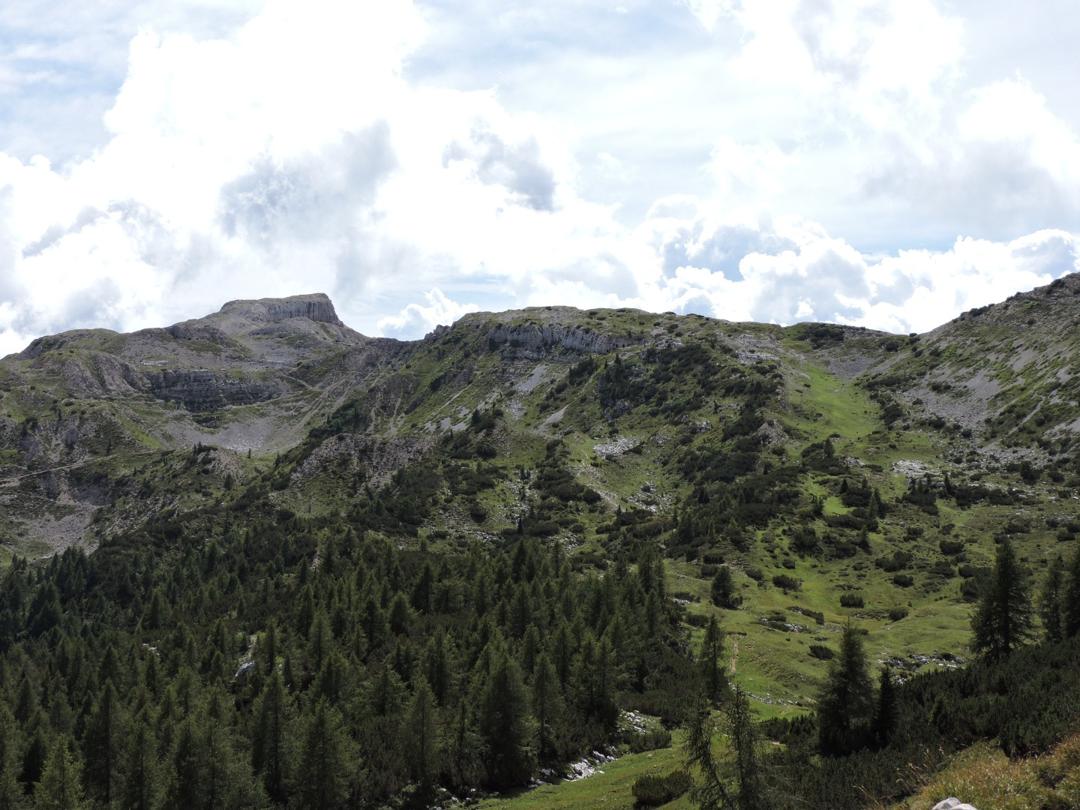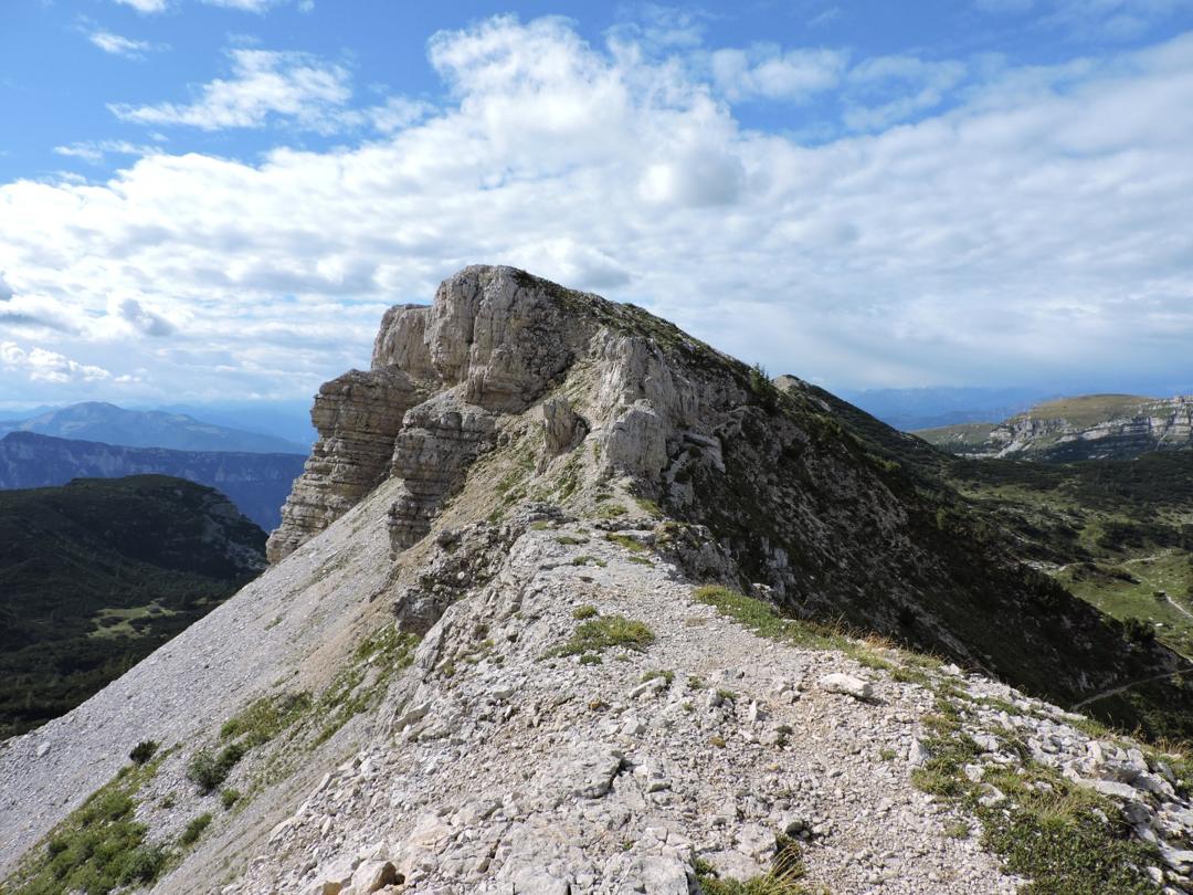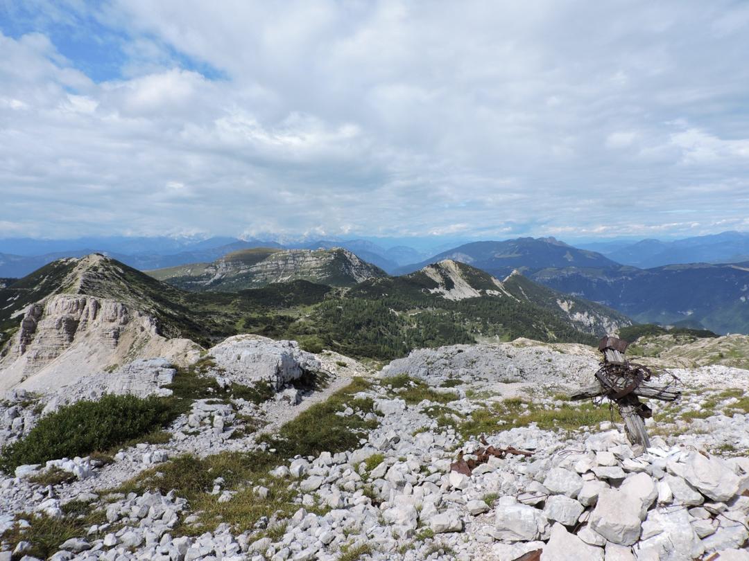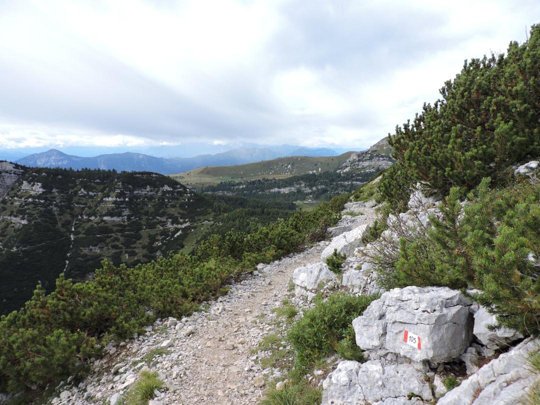 Passato il Piccolo Roite il sentiero rimane a ovest del monte Roite con alla nostra sinistra l'alpe di Cosmagnon, la Vallarsa e il Corno Battisti.