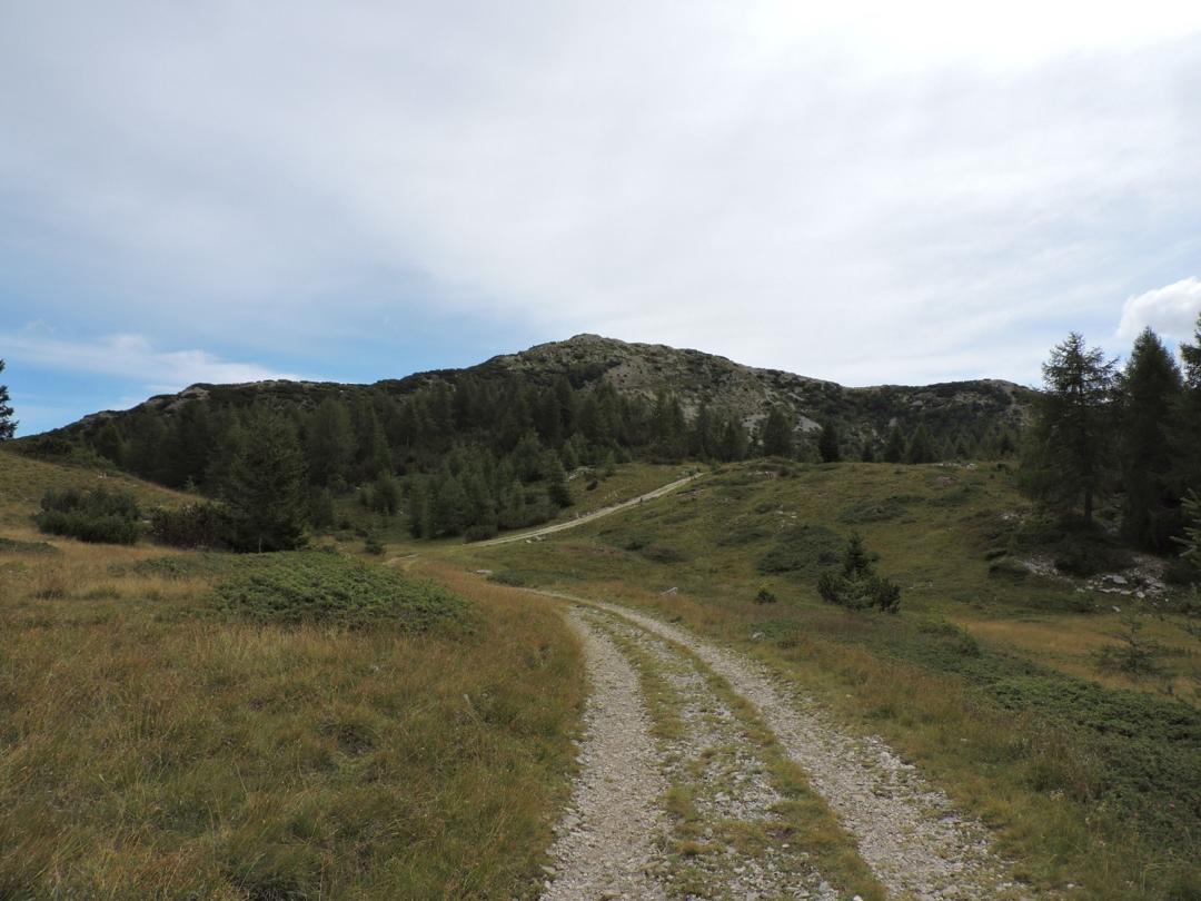 Arrivati ad un incrocio poco prima della malga si rimane a sinistra, la strada di destra è quella del ritorno, e si prosegue fino a Sella delle Pozze passando per Alpe Pozze.