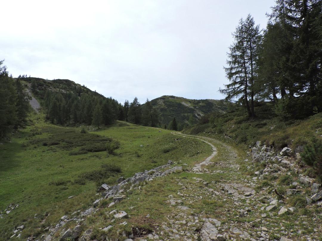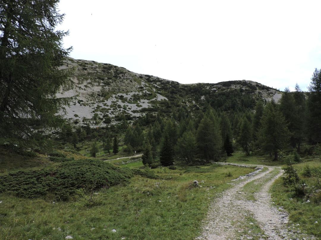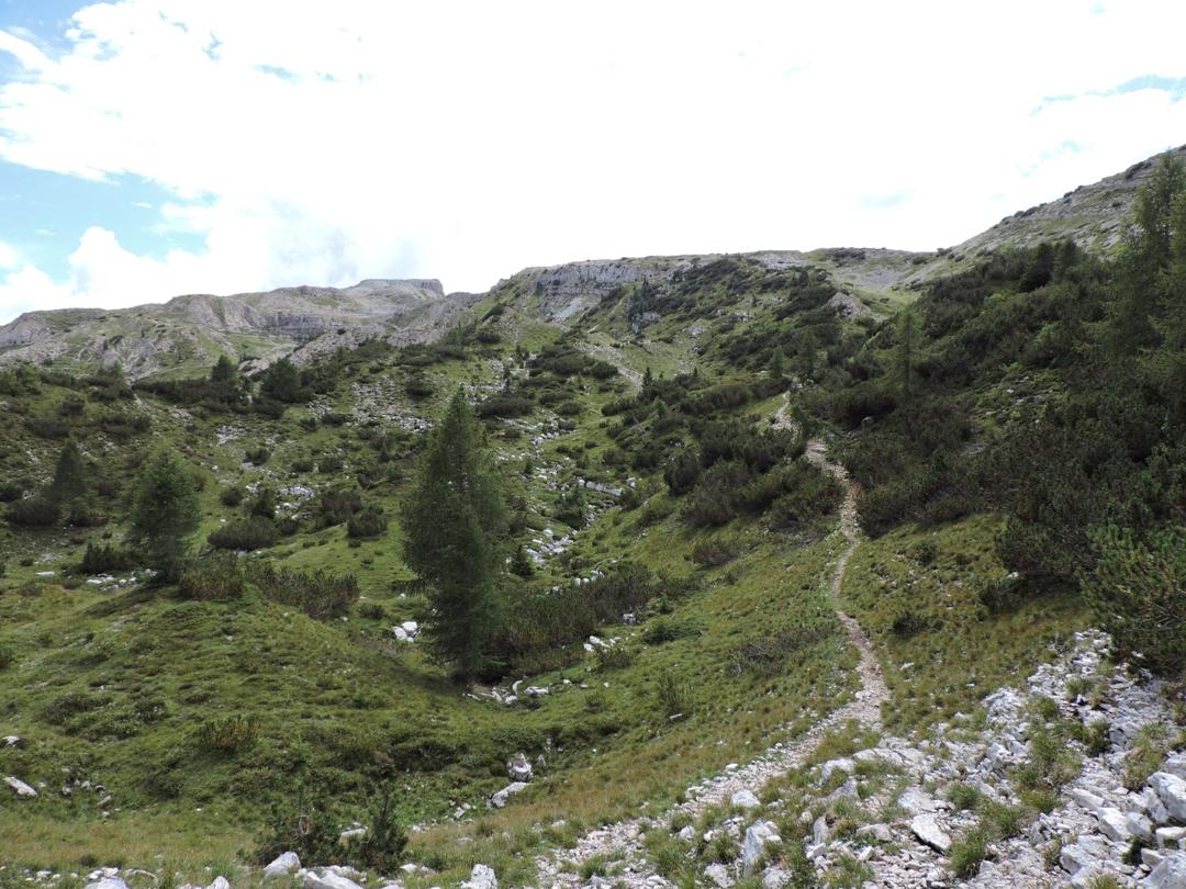 Alla Sella delle Pozze prendiamo a destra verso Sella Est dei Campiluzzi. Finisce la strada ed inizia il sentiero.