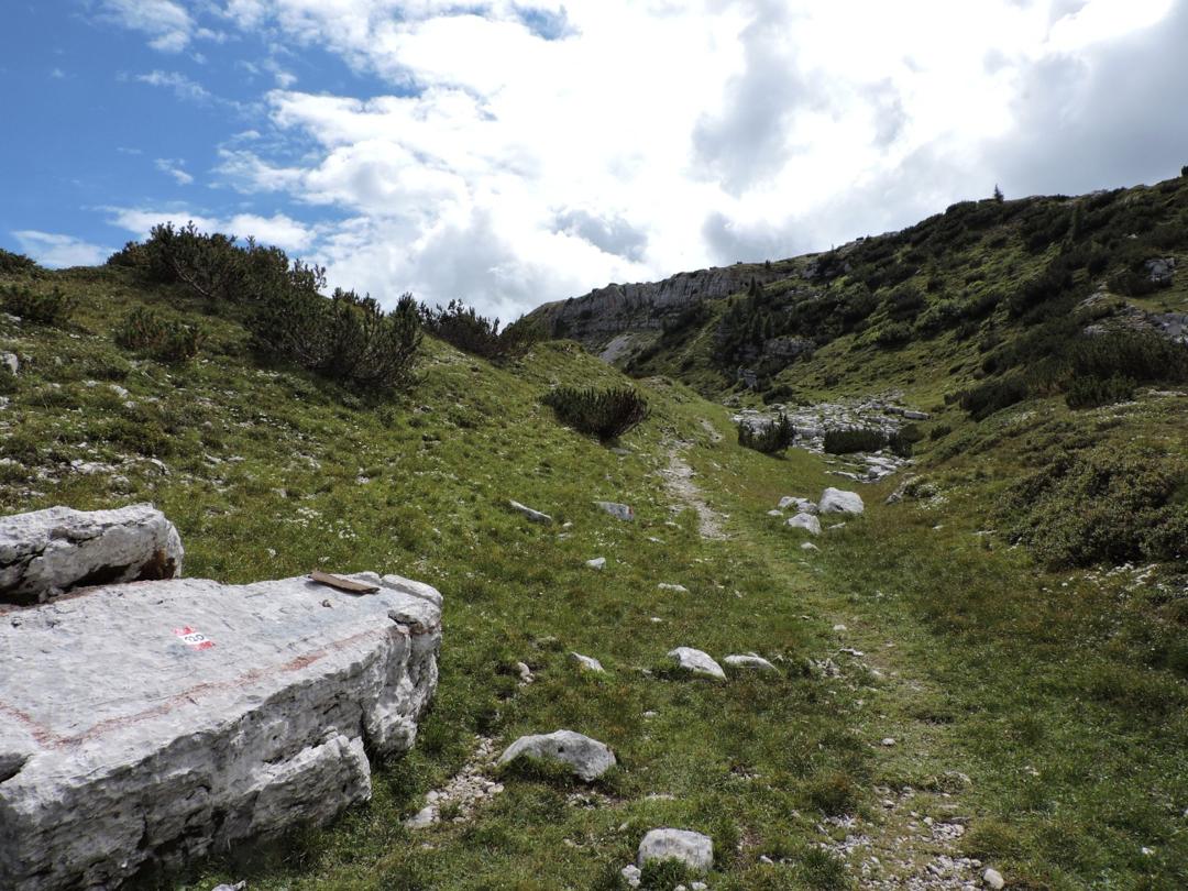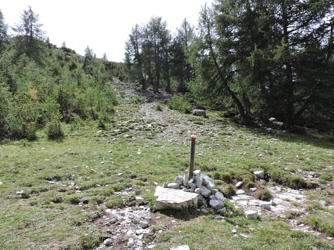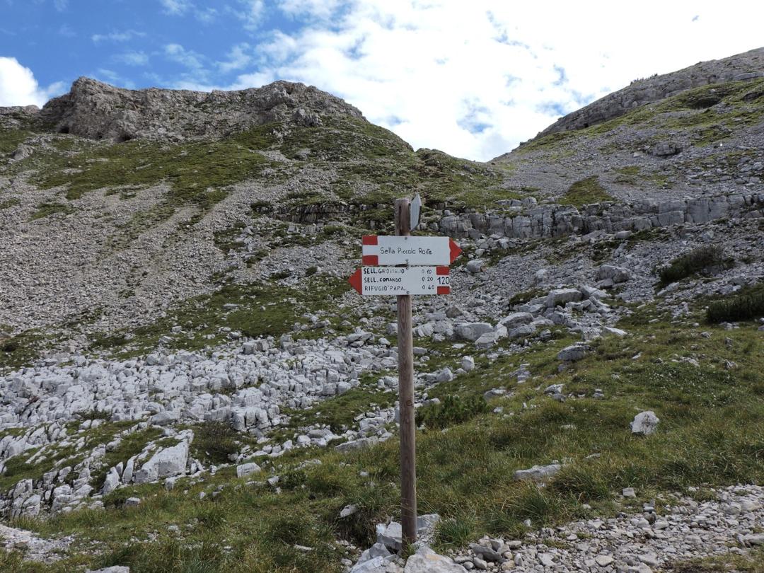 Al termine della dolina si lascia il sentiero 120 e si seguendo le indicazioni per la Sella al Piccolo Roite.