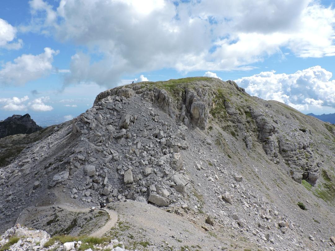 Per il ritorno è necessario ripercorrere il sentiero già fatto fino quasi alla Sella al Piccolo Roite, seguendo le indicazioni del sentiero 105 (E5). Pare che il sentiero originale, che passa nei pressi della cresta del monte Piccolo Roite, sia stato deviato più in basso. Personalmente ne capisco il perché .... Il sentiero originale corre per una decina di metri su una cresta e per chi soffre di vertigini (ahimè) non è molto facile da affrontare. Passato il pezzo "vertiginoso" sembra che un masso blocchi la strada ... ma nessun problema e nessun rischio.