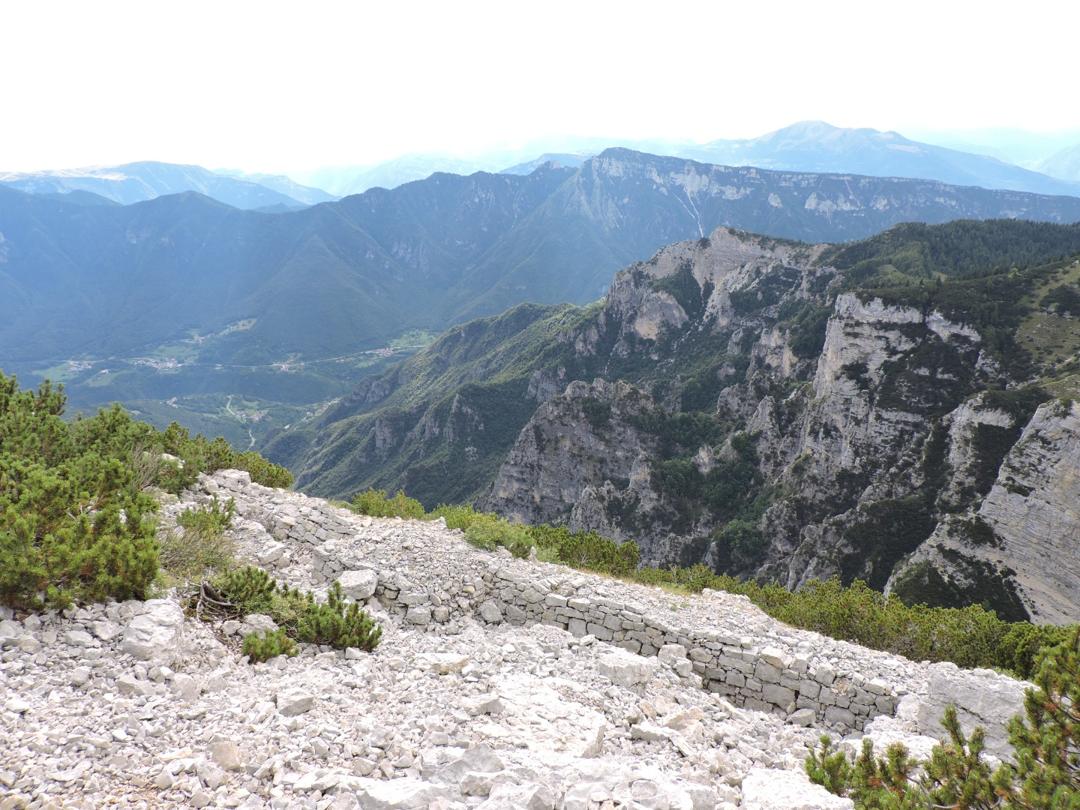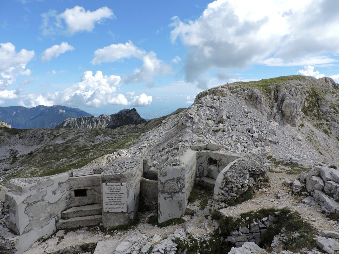 Arrivati sul Dente, oltre alle opere militari, uno spettacolo a 360°, il panorama è mozzafiato. Riconosciamo facilmente l'altopiano di Asiago e molte sue cime, l'Alpe Cimbra, il gruppo del Carega, ma lo sguardo si perde molto più in la. L'austriaco della Grande Guerra poteva vedere i suoi monti e la nostra pianura.