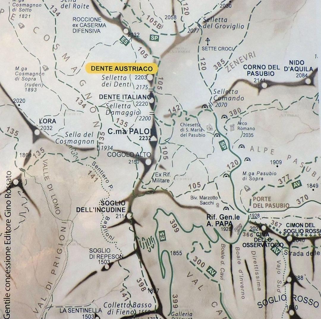 Il Dente Austriaco può essere raggiunto facilmente anche dal Dente Italiano ma abbiamo distinto le due cose per conoscere meglio le zone che allora erano dell'Italia e dell'Austria.