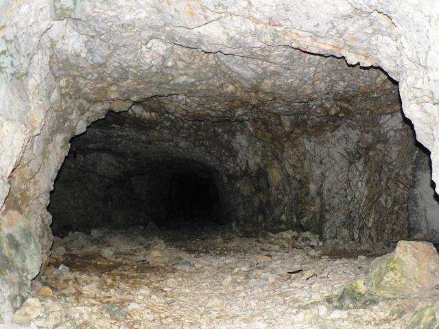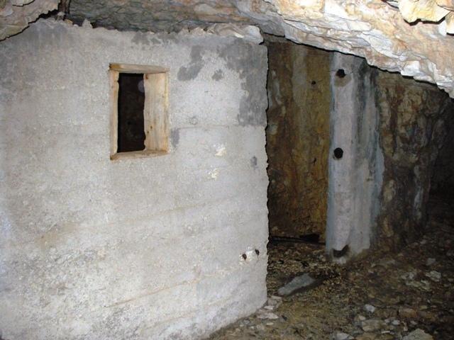 La galleria è molto ampia e lunga, dopo una cinquantina di metri si biforca per poi riunirsi nelle 4 postazioni per i cannoni.