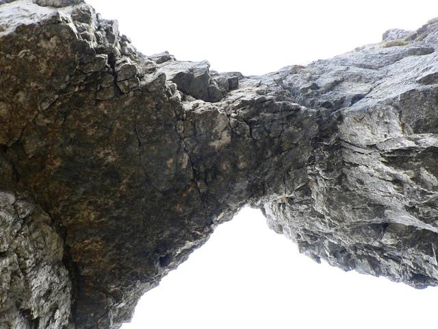 Eccolo, un arco naturale con un'altezza di circa 5 metri di altezza visibile anche dal SS 349 del Costo mentre si sale verso Asiago (in linea d'aria dista 8,5 Km e si vede come un puntino bianco appena sotto la cima del monte).