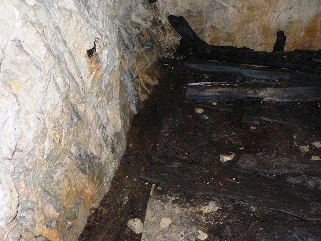 Particolare veramente interessante, ritrovato in alcune stanze scavate nella roccia, sono i resti di come queste grotte erano rivestite di tavole per rendere l'ambiente asciutto. Alcune file di cunei in legno piantate sulla roccia permettevano di fissare delle tavole al soffitto e alle pareti ed infine veniva fatta una base in cemento per la pavimentazione (probabilmente anche questa rivestita).