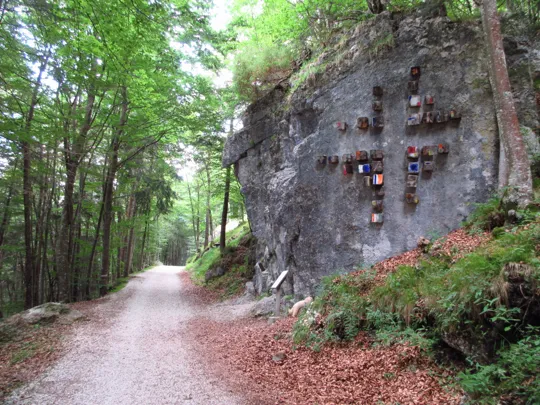 La strada porta all'inizio del sentiero dove si svolta a sinistra per iniziare il vero e proprio percorso.