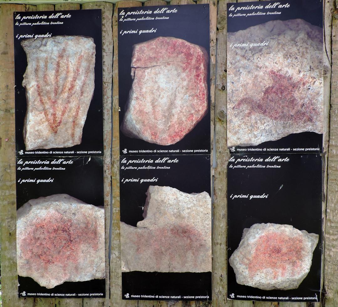 Riparo Dalmeri offre la possibilità di studiare sia l'arte che la ritualità di un gruppo di cacciatori-raccoglitori della fine del Paleolitico che frequentarono circa 13.000 anni fa la fascia prealpina. Un gran numero di pietre con pitture in ocra ha svelato, dopo l'asporto di sedimento e della concrezione che le ricopriva, figure antropomorfe e di animali, disegni schematici e impronte di mani.