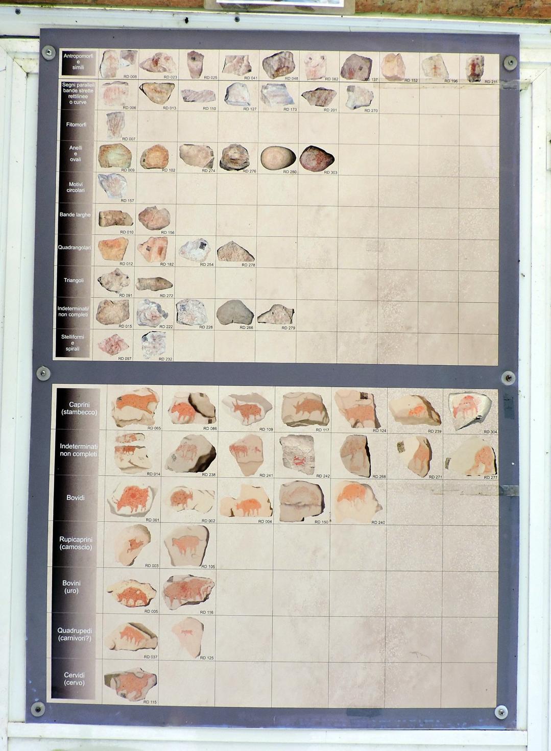 Grande significato simbolico assume il contesto di ritrovamento delle pitture, collocate nell'area che corrisponde allo spazio esterno di una struttura abitativa (capanna). La loro deposizione è avvenuta durante le prime occupazioni umane. Le espressioni figurative sono rese con verismo evidenziando il carattere degli animali.
