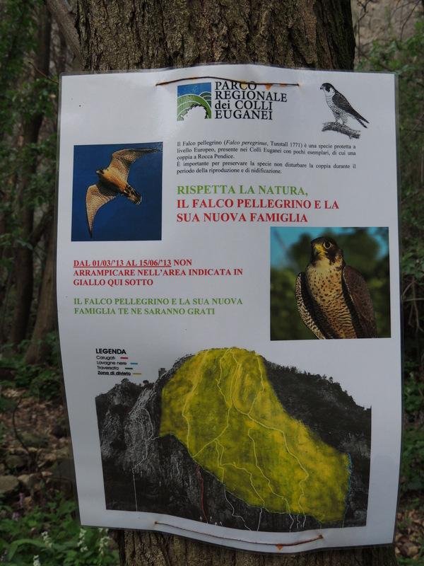 La presenza del Falco pellegrino è chiaramente segnalata e si può vedere il suo nido.