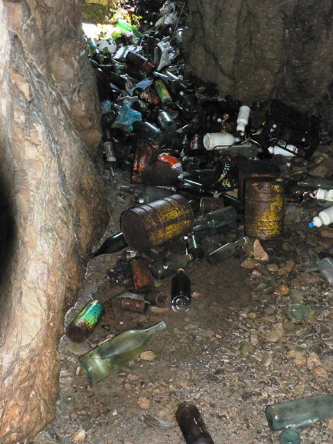 Il sentiero che porta verso il Monte Cavioio presenta altre gallerie rifugio e anche queste piene di immondizie. In questo caso chi ha lasciato lo scempio ha anche fatto un po' di strada a piedi per raggiungerle, forse una passeggiatina per digerire meglio